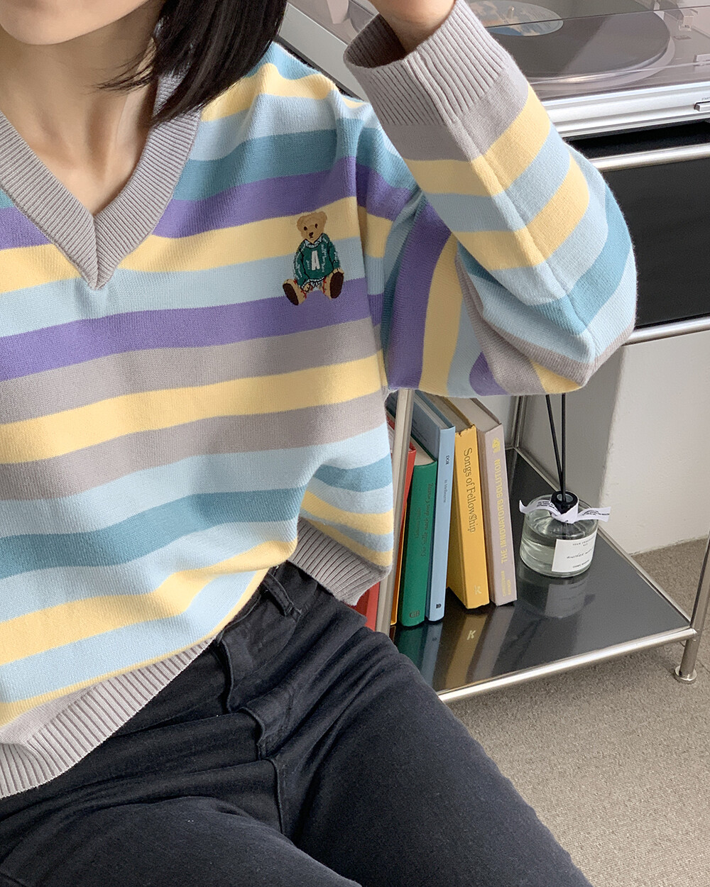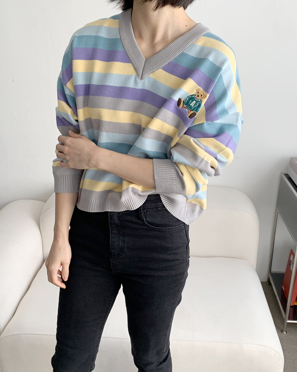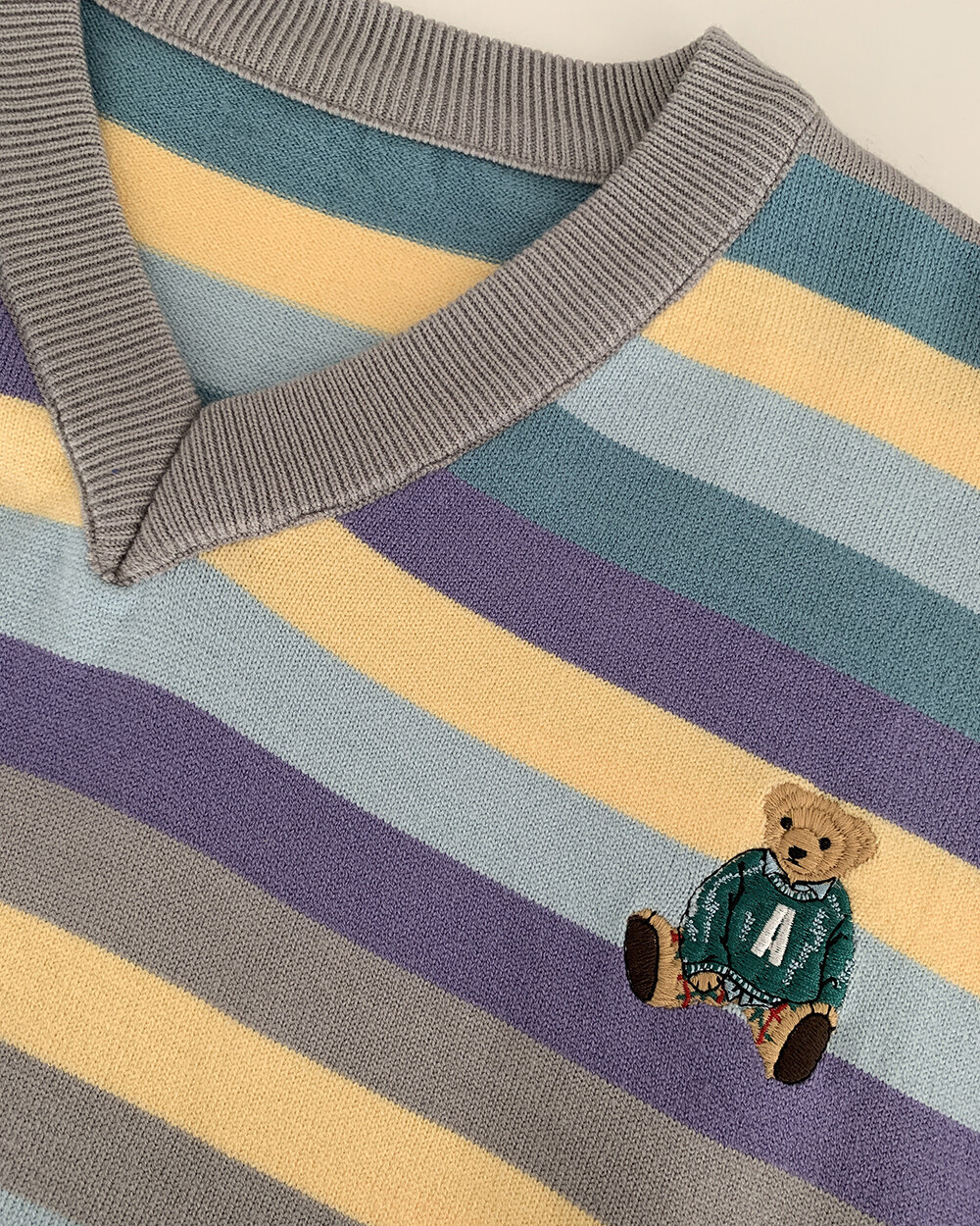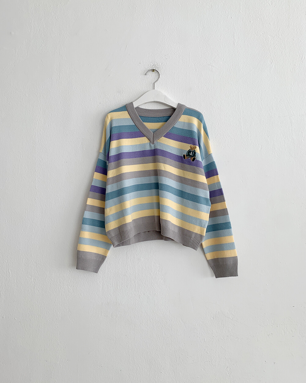 ☆한정☆ ST 곰돌이 자수 브이넥 니트