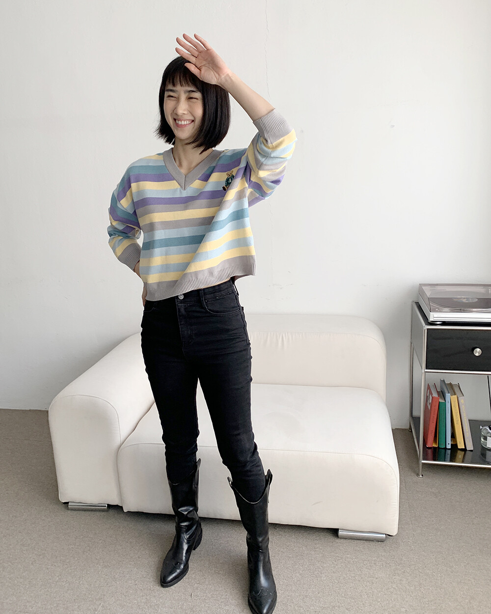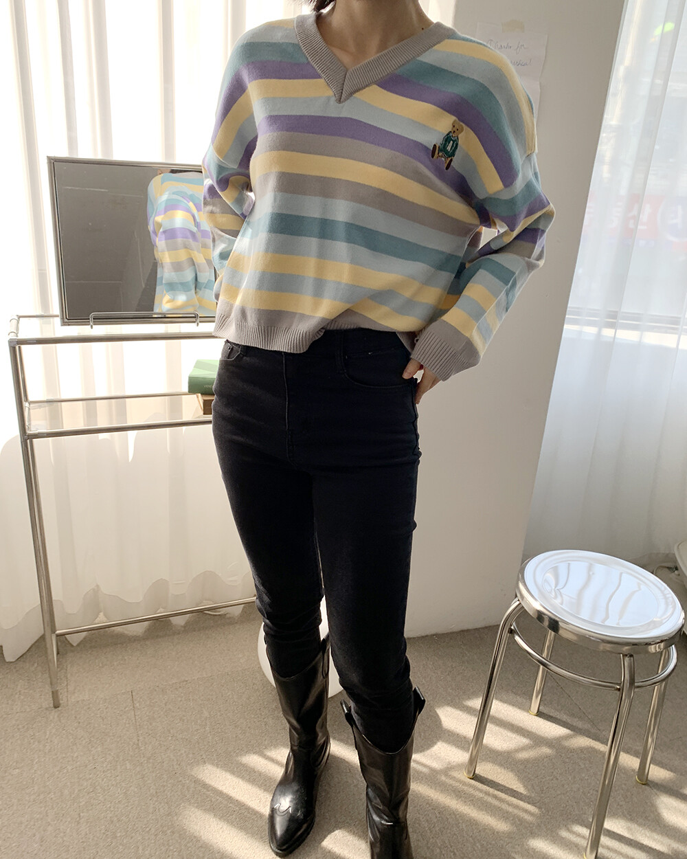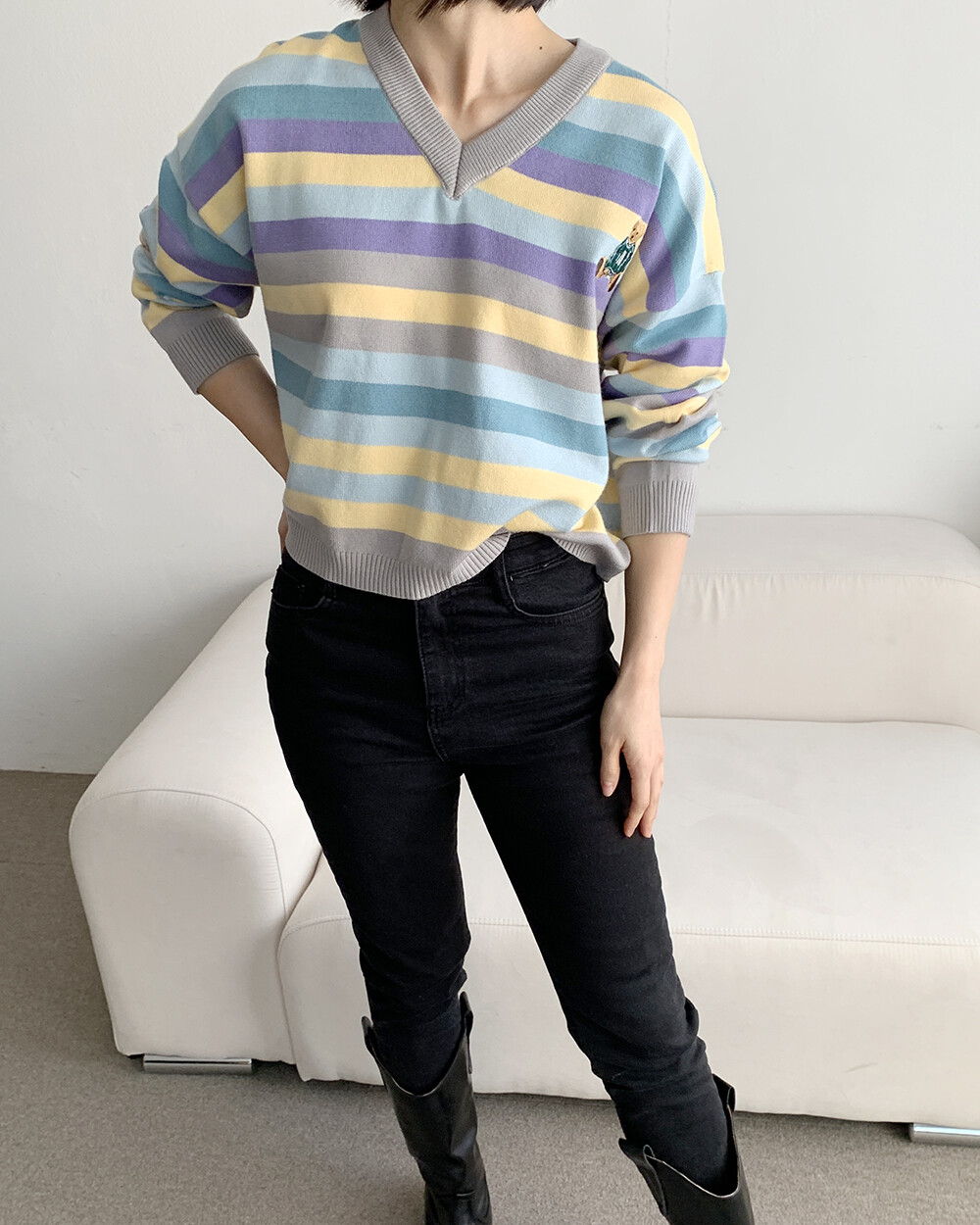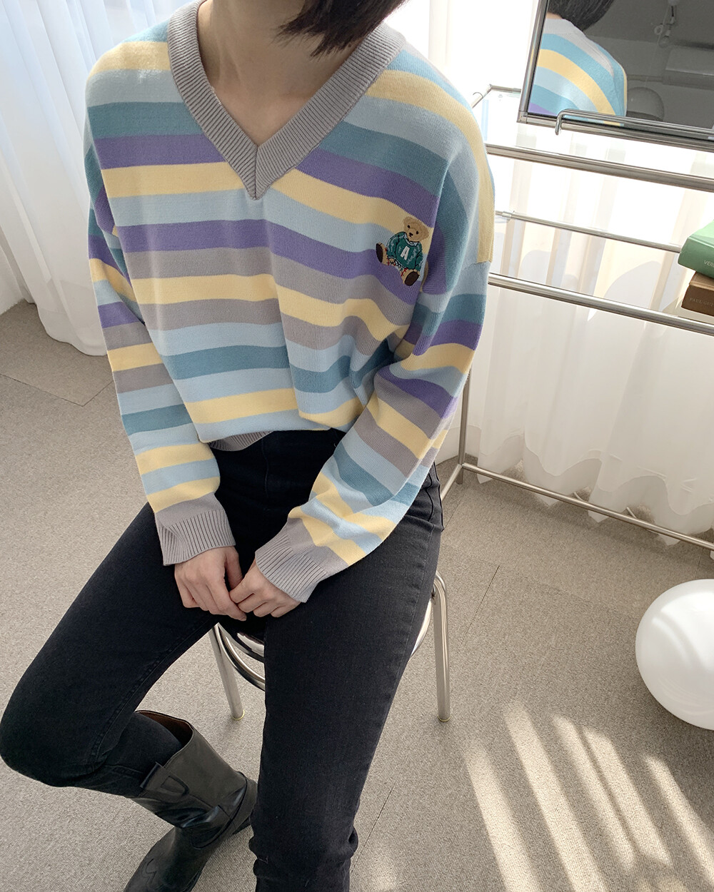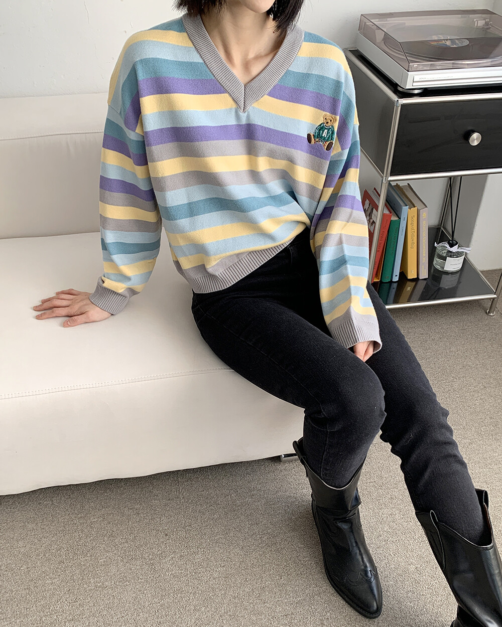 ☆한정☆ ST 곰돌이 자수 브이넥 니트