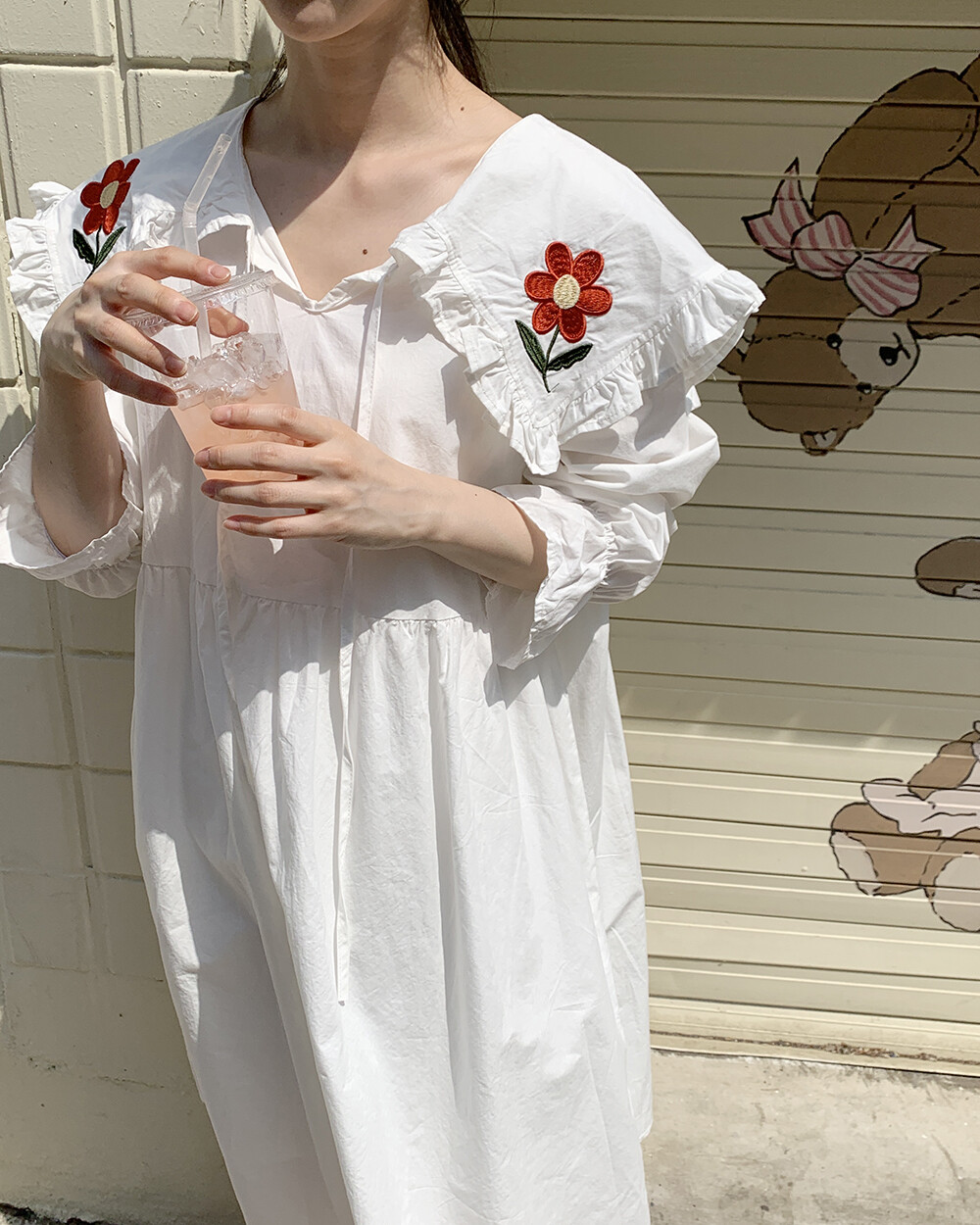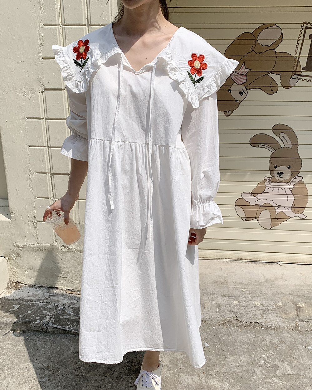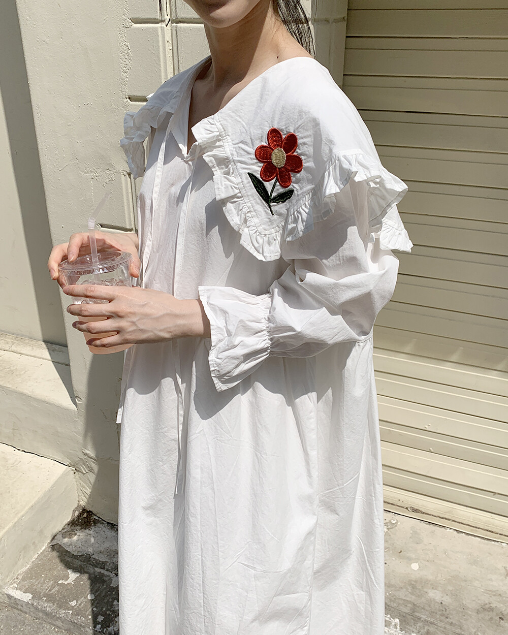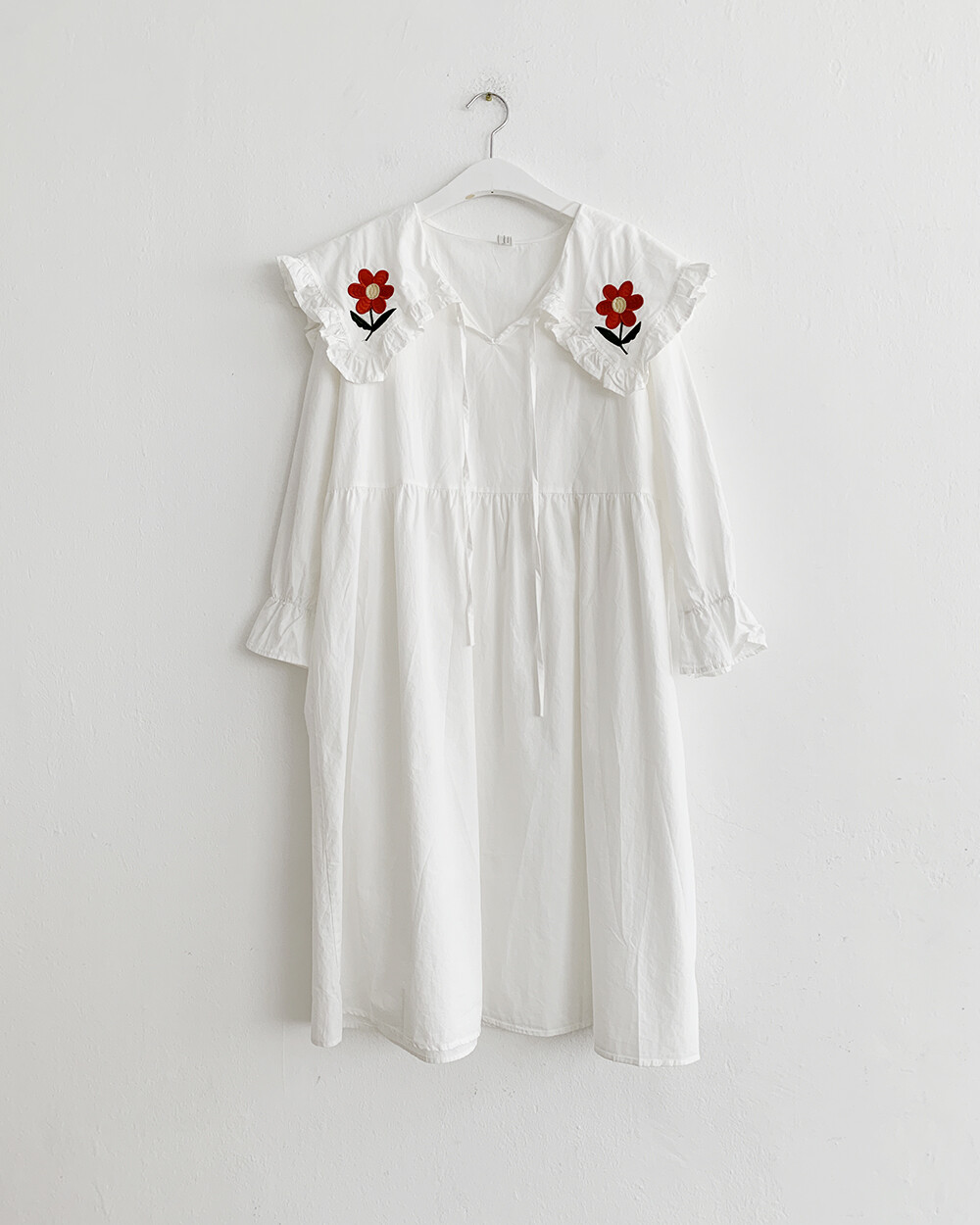 ☆단독☆ 꽃자수 빅카라 화이트 원피스