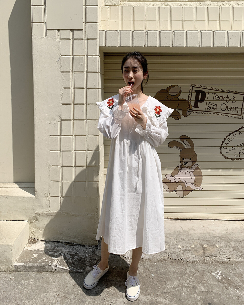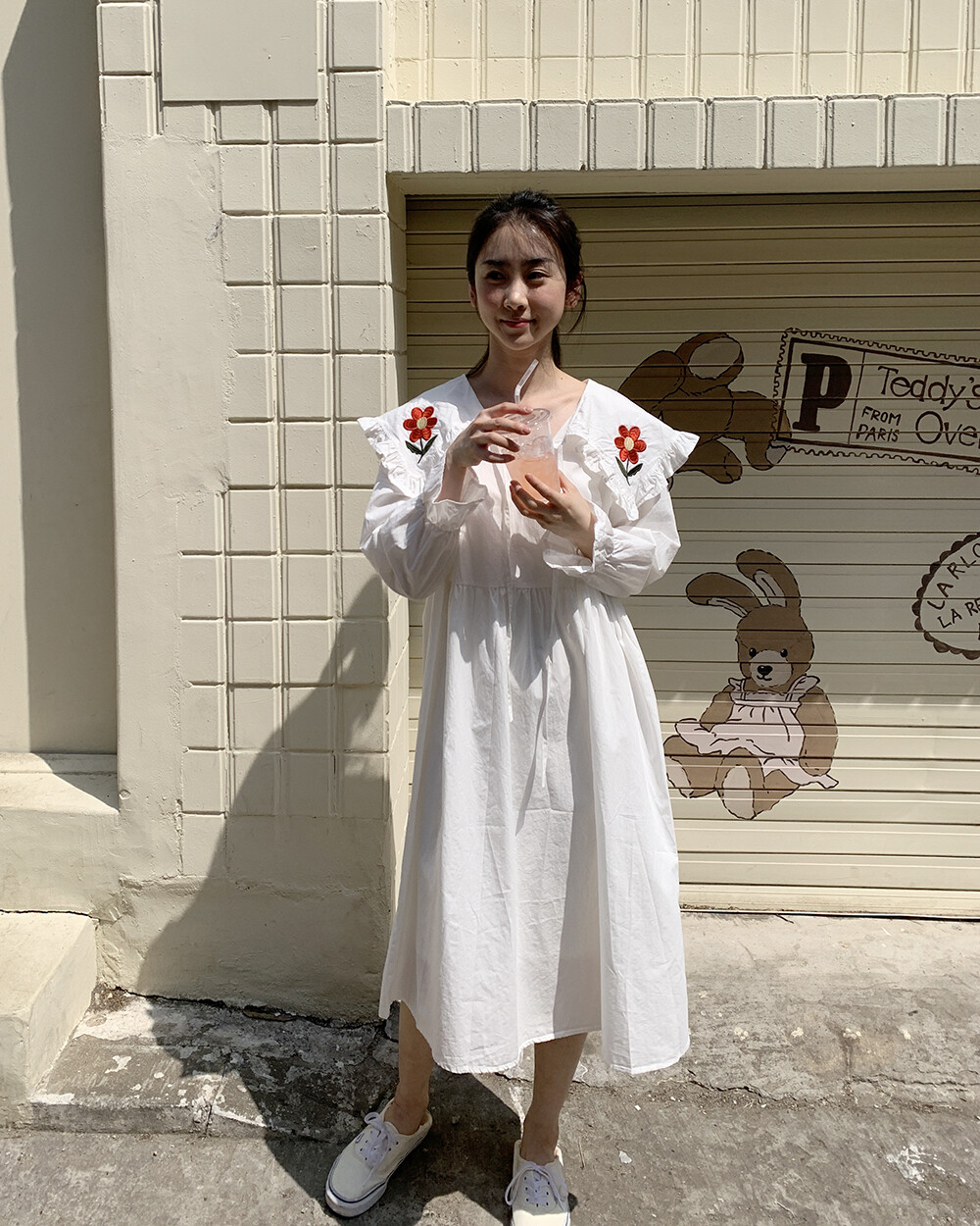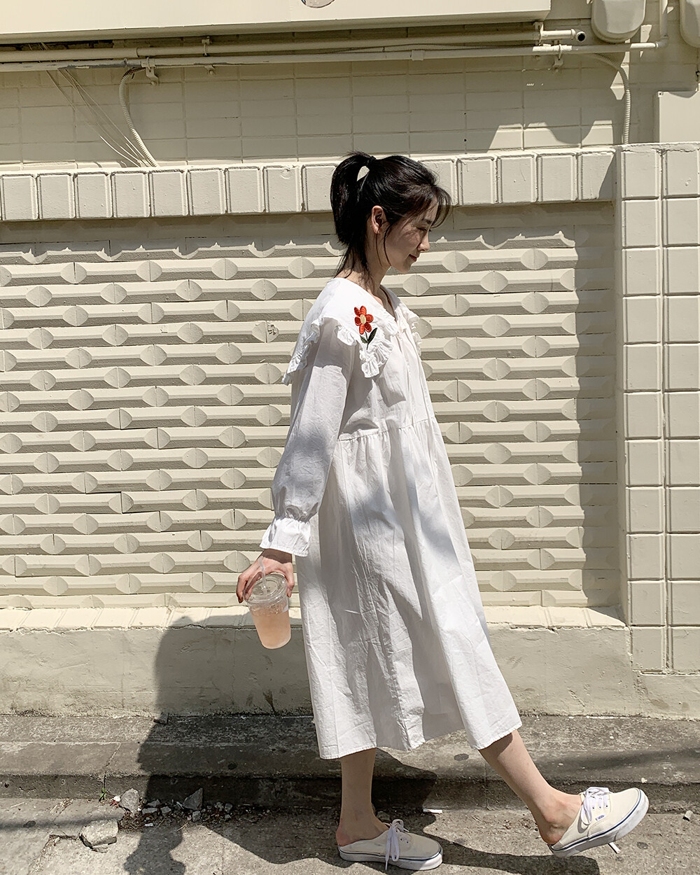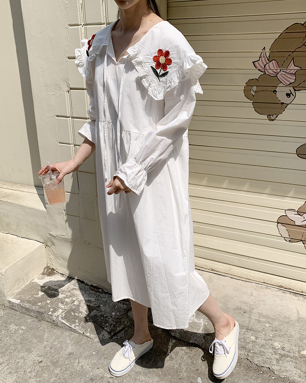 ☆단독☆ 꽃자수 빅카라 화이트 원피스