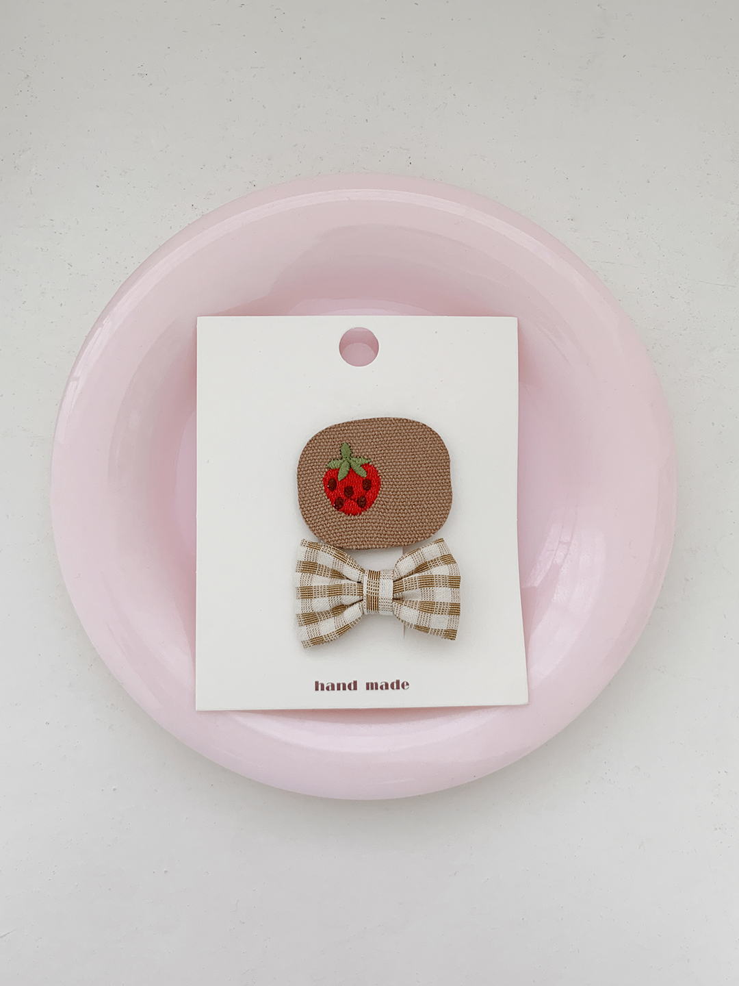 귀여운 딸기 자수가 포인트가 되는 내추럴 무드의 헤어핀 세트예요 🍓