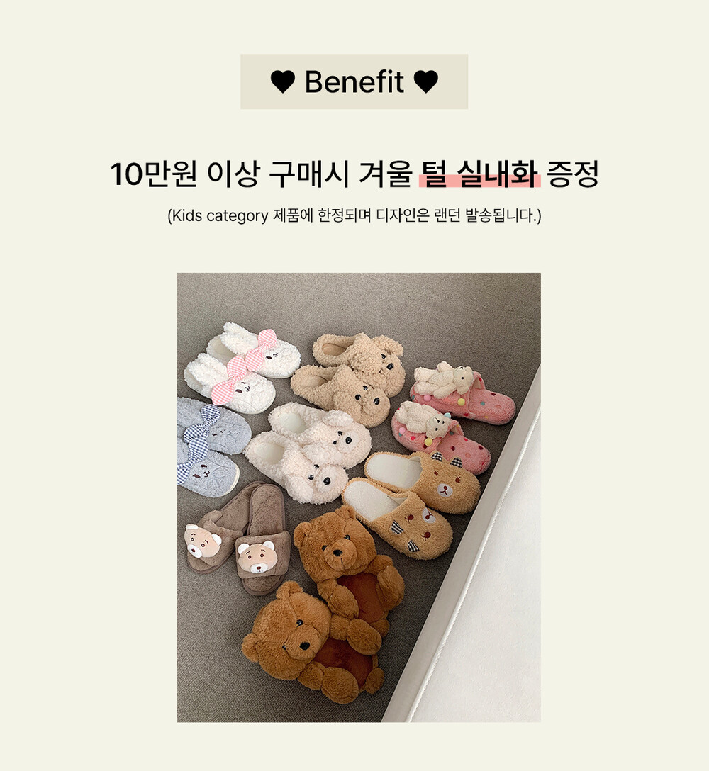 10만원 이상 구매시 "겨울 털 실내화" 사은품 증정됩니다