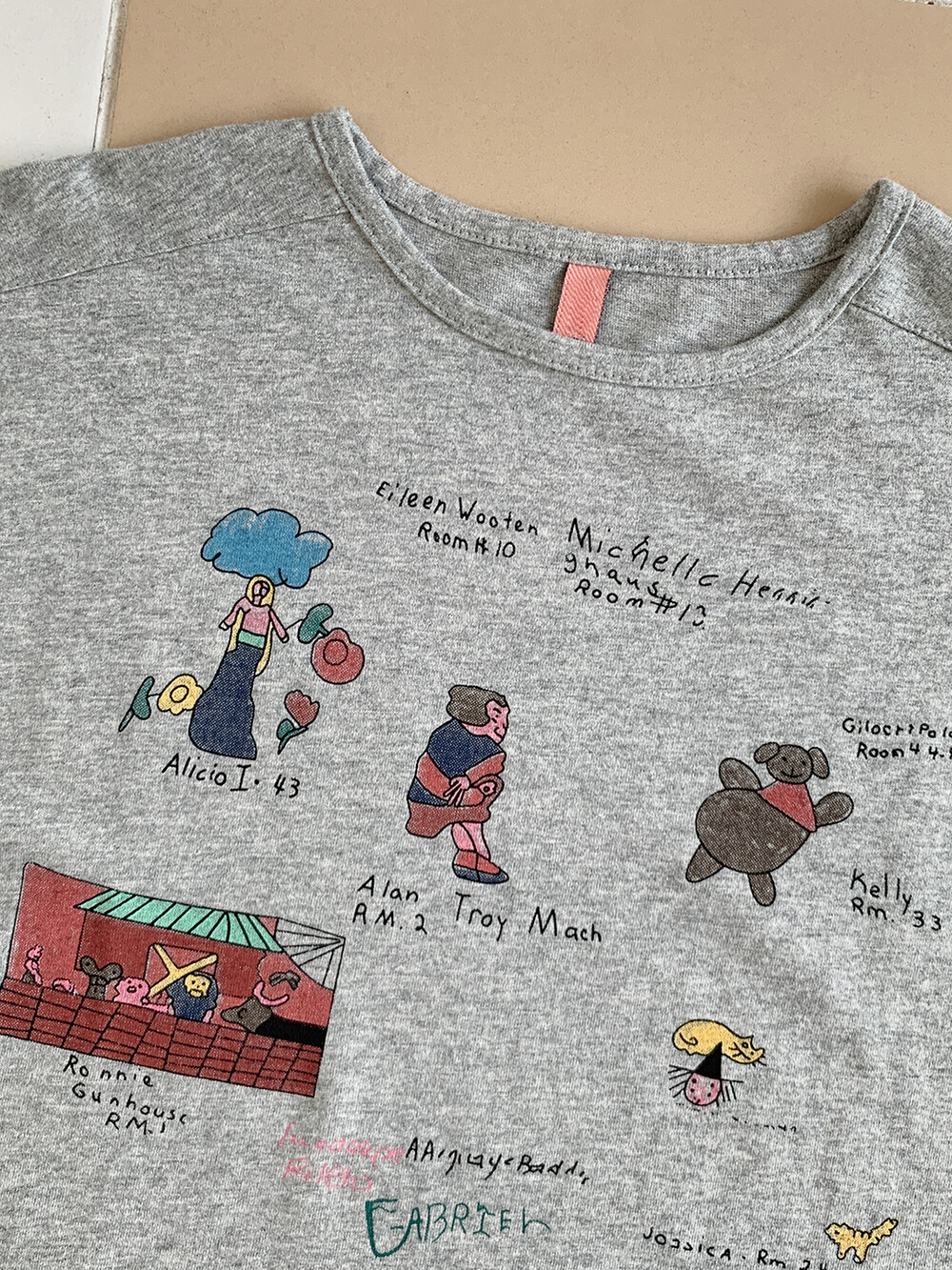 아이들이 그린 듯한 유쾌한 일러스트로 감성을 담은 티셔츠 예요!
