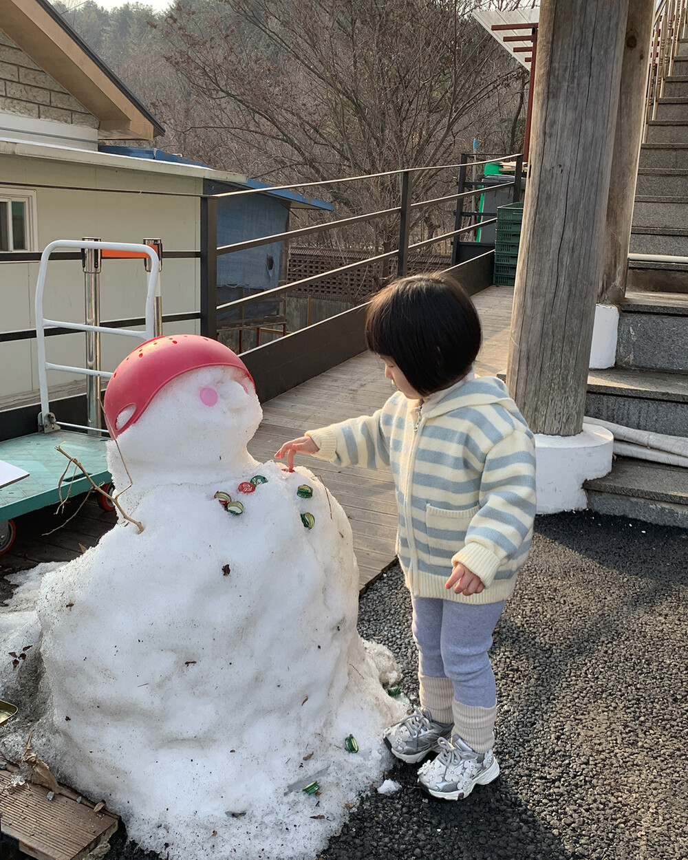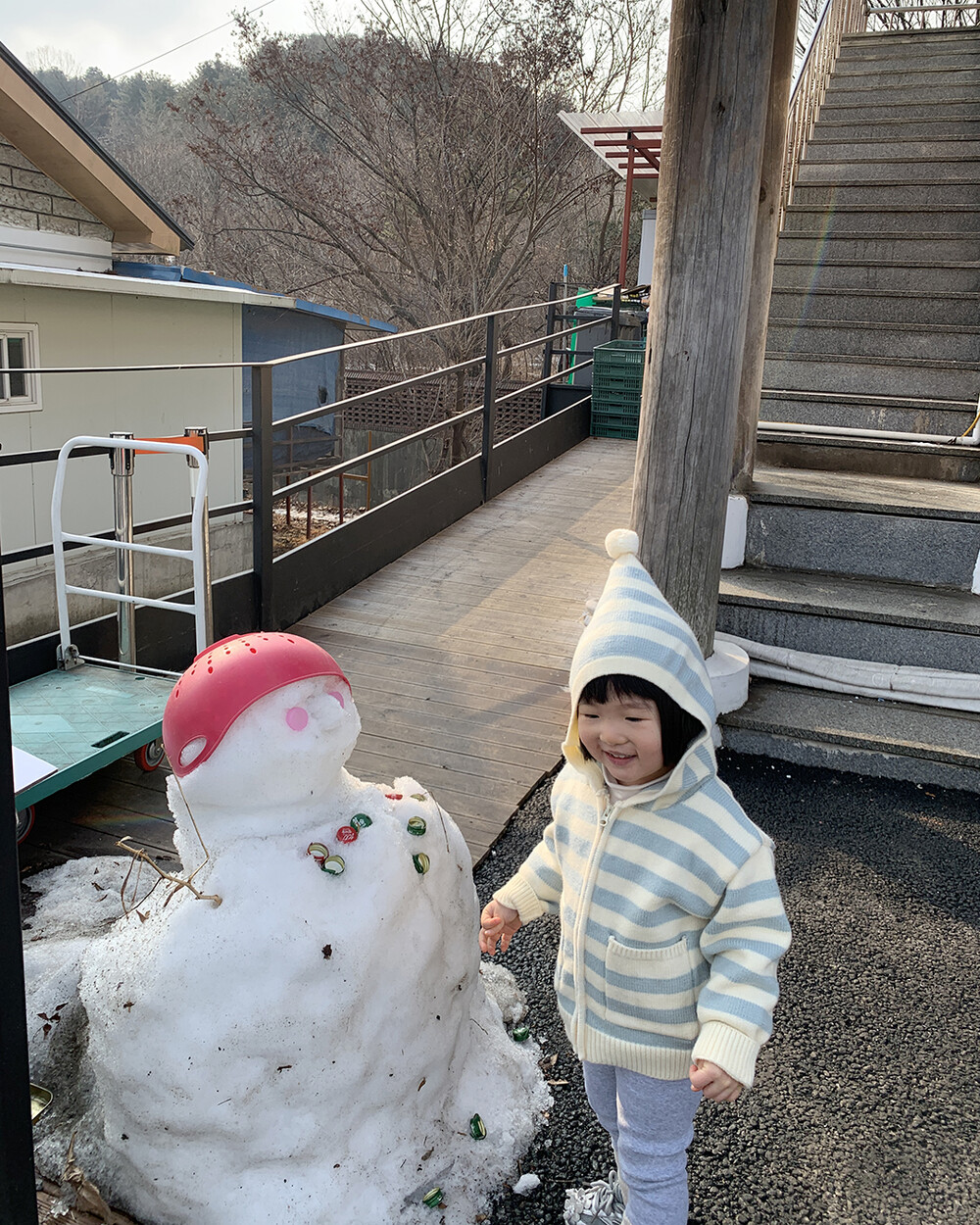 큼직한 후디에 폼폼 장식으로 뒷모습마 너무 사랑스러워요♥