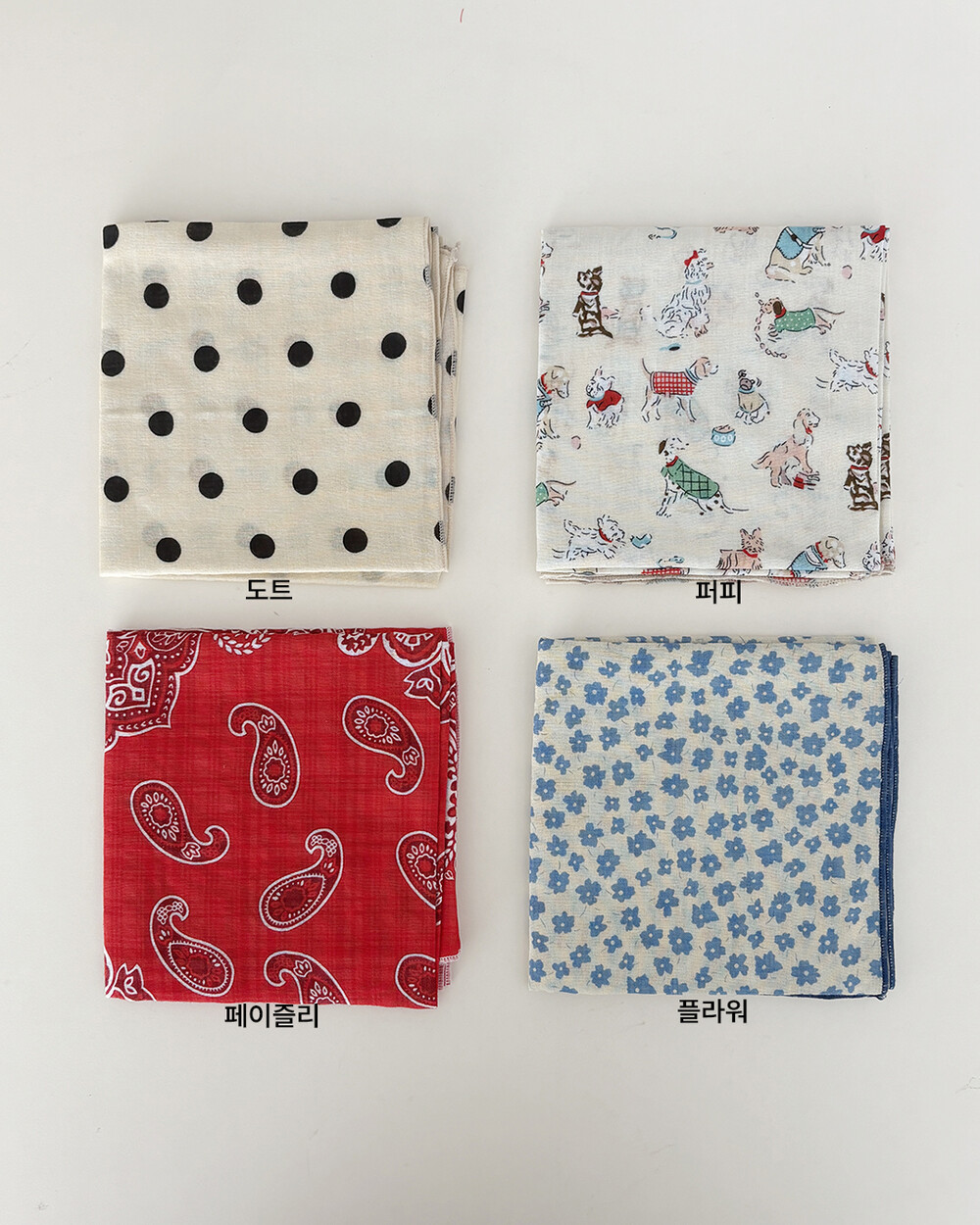 도트(크림), 퍼피(아이보리), 페이즐리(레드), 플라워(소라)