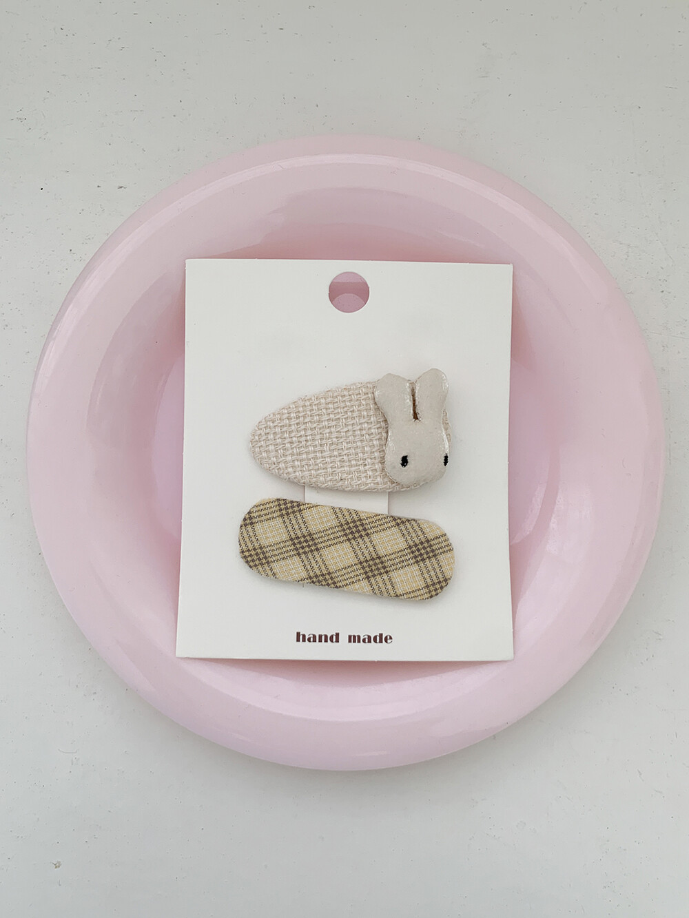 Kids_폼폼 체크래빗 똑딱핀 (2개세트)