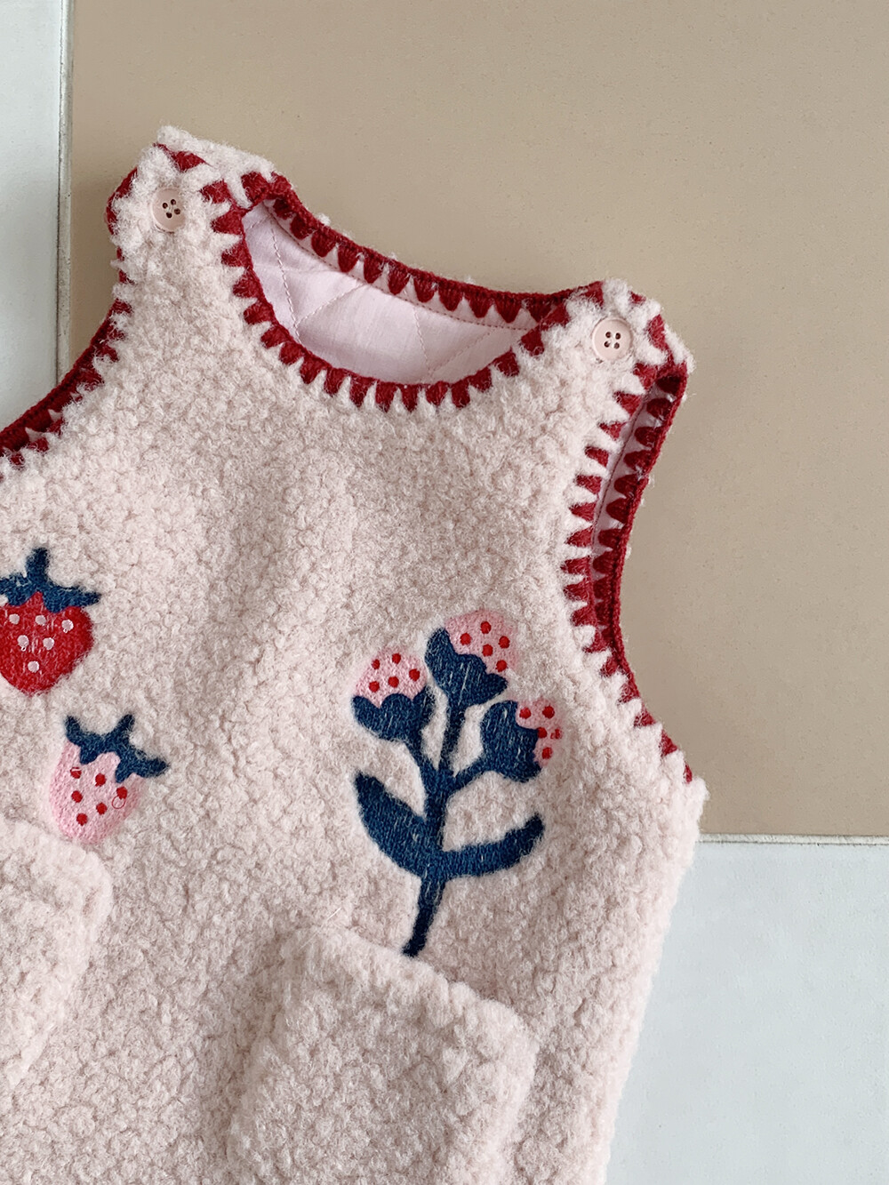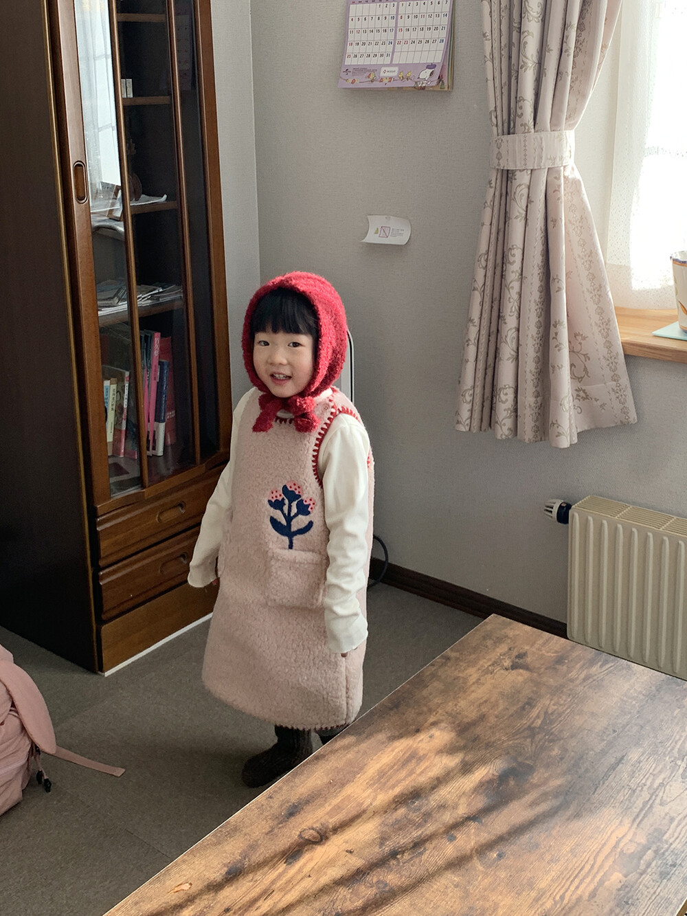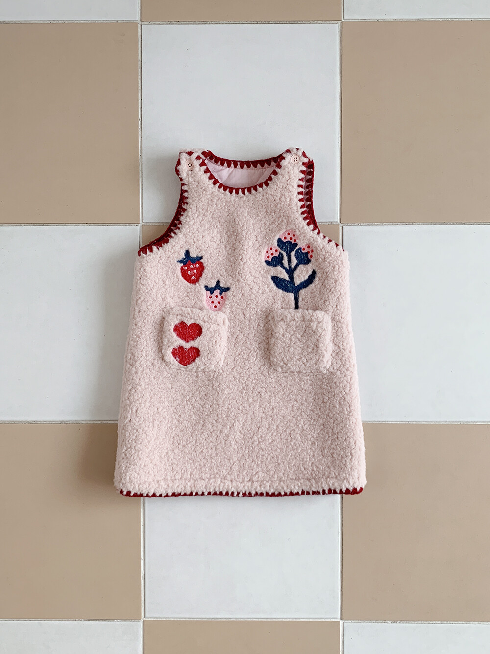 하트 꽃 딸기 자수 패턴으로 감성을 더한 원피스예요.