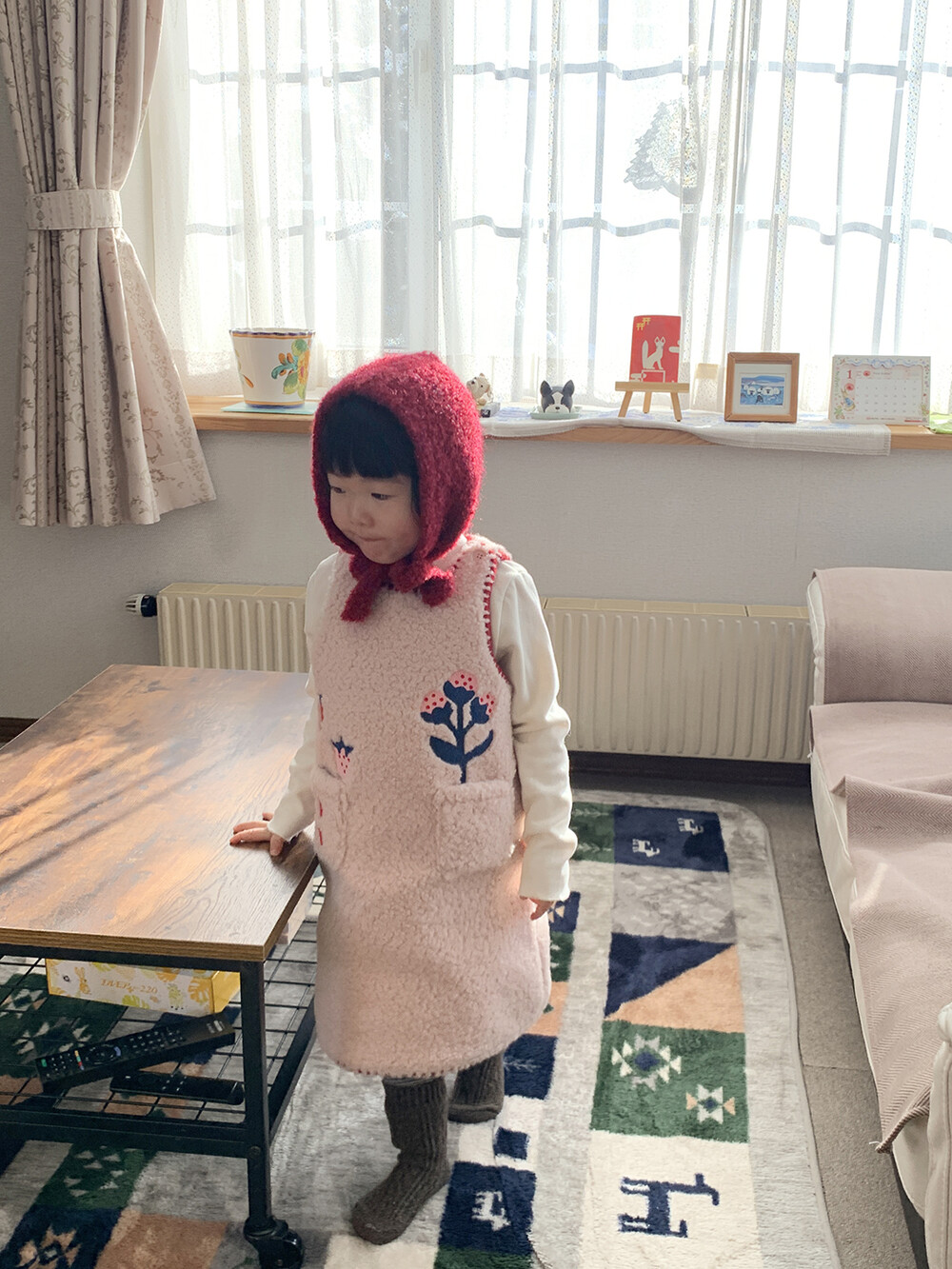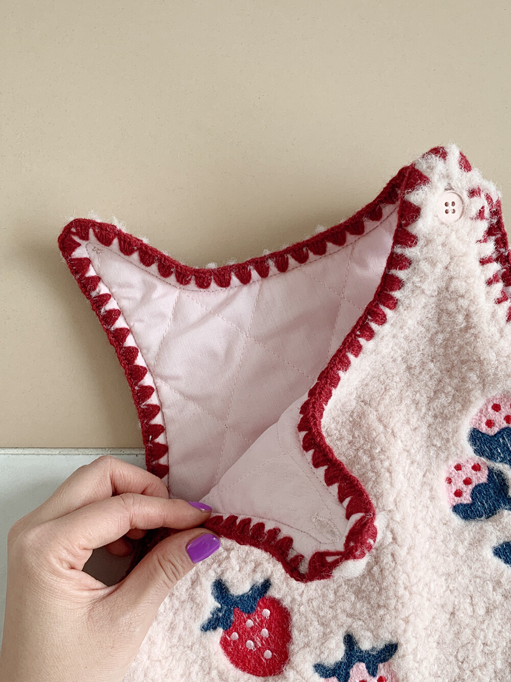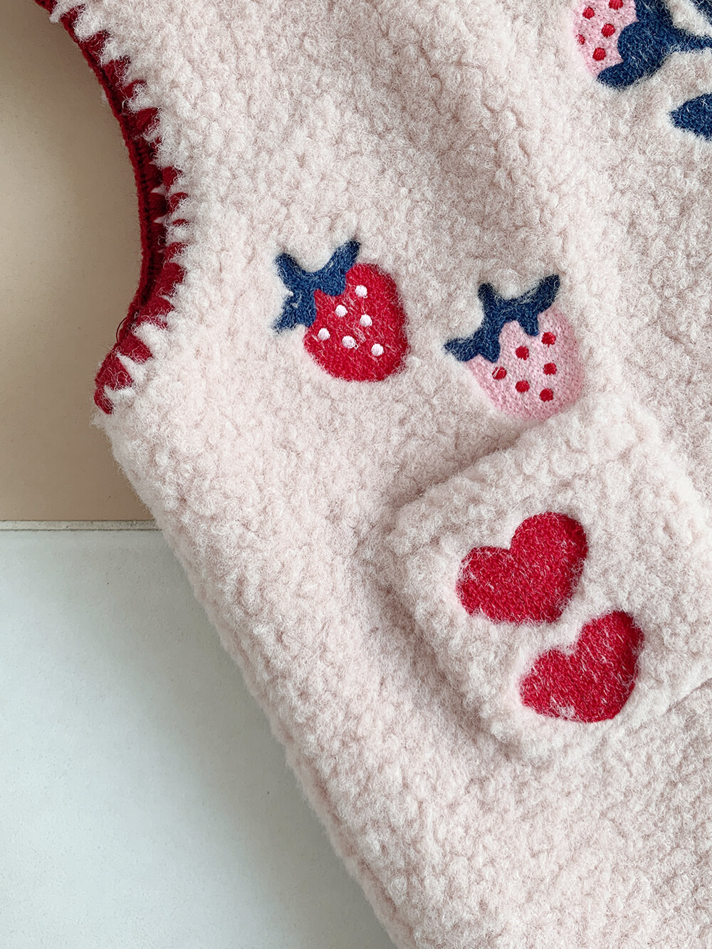 하트 꽃 딸기 자수 패턴으로 감성을 더한 원피스예요.