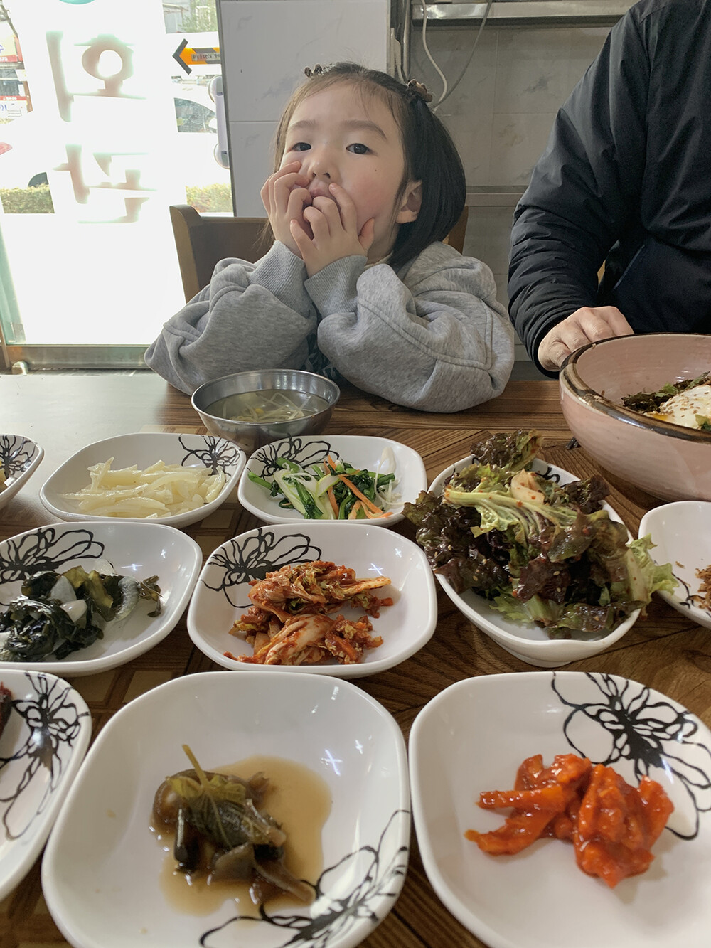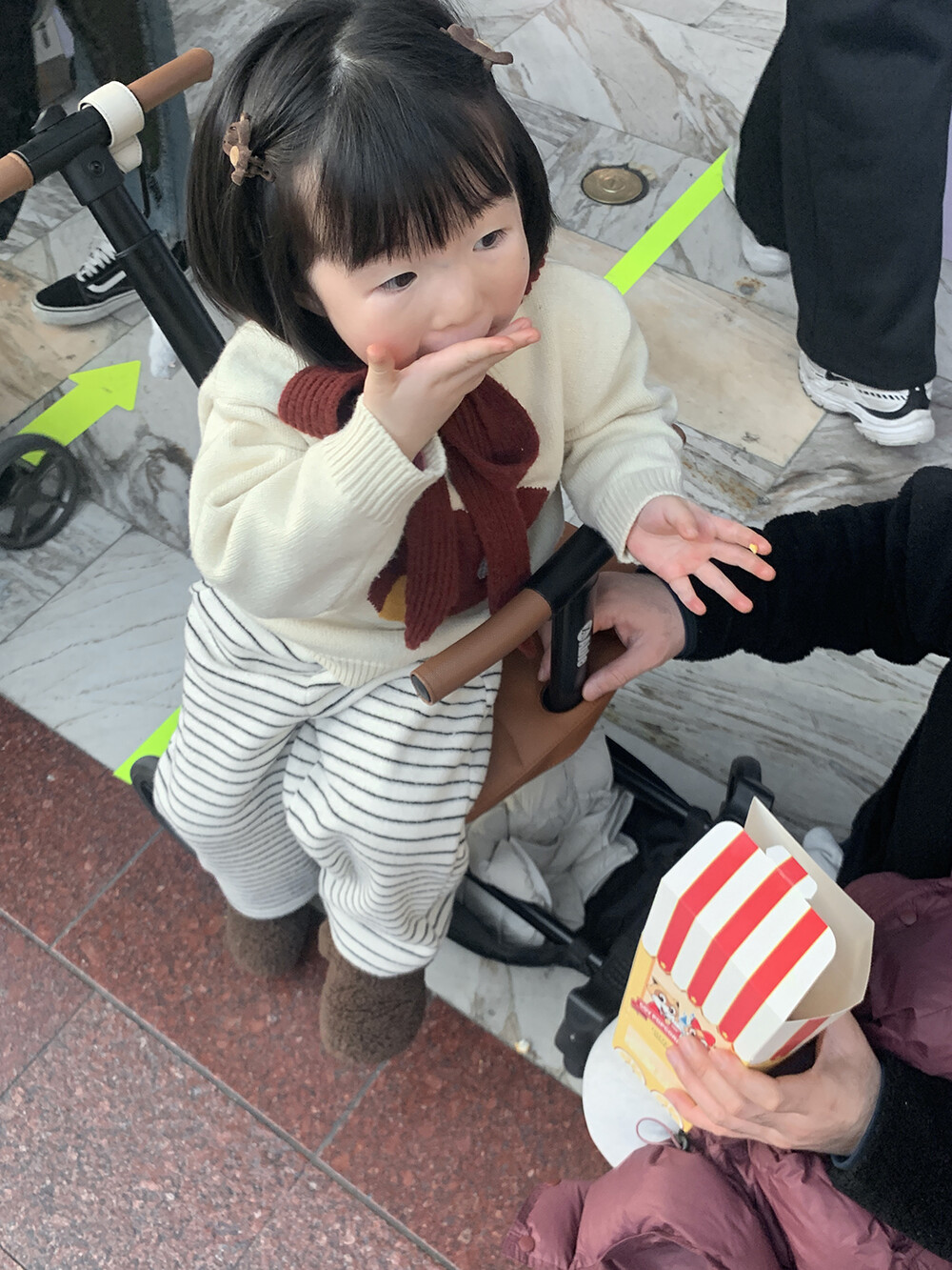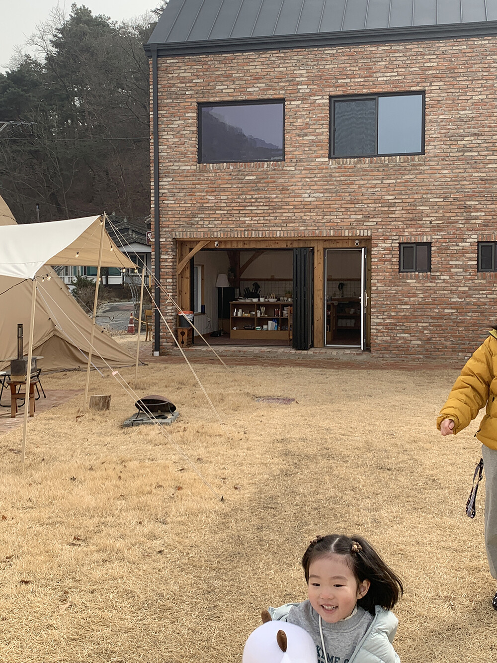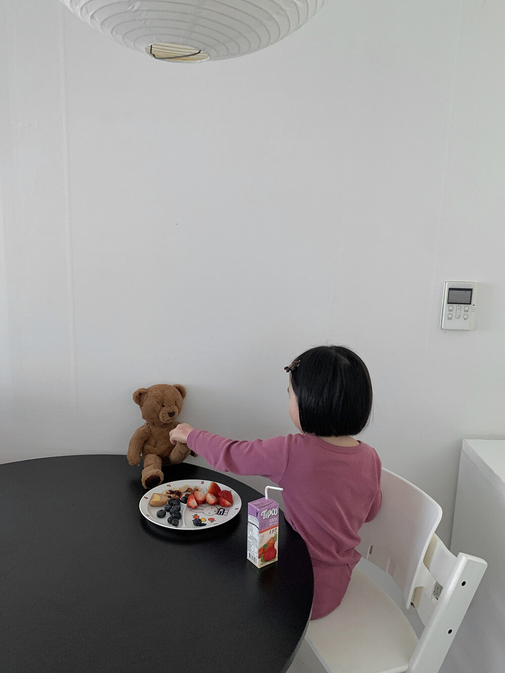 포근한 브라운 컬러의 미니 곰돌이가 아이 머리 위에