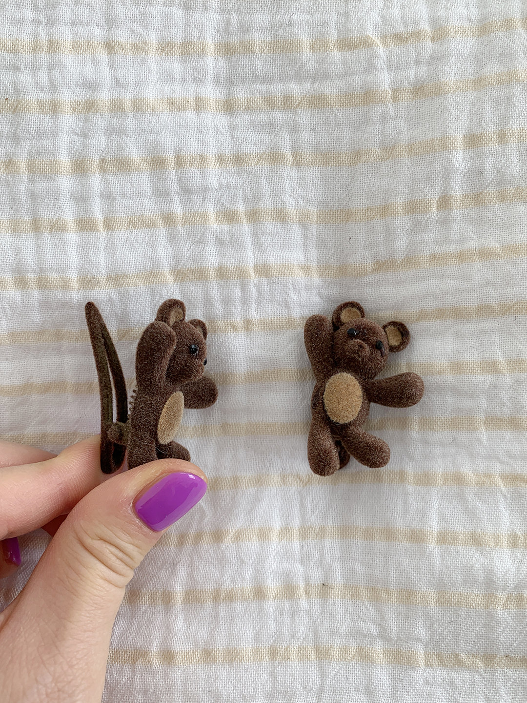 보들보들한 벨벳 텍스처에 입체감 있는 곰돌이 디테일이 더해져