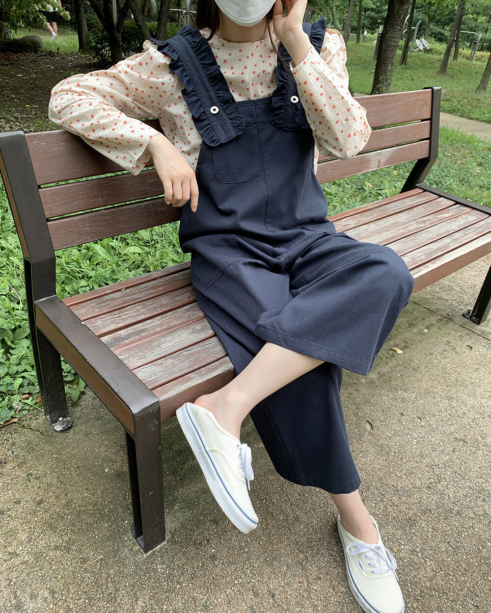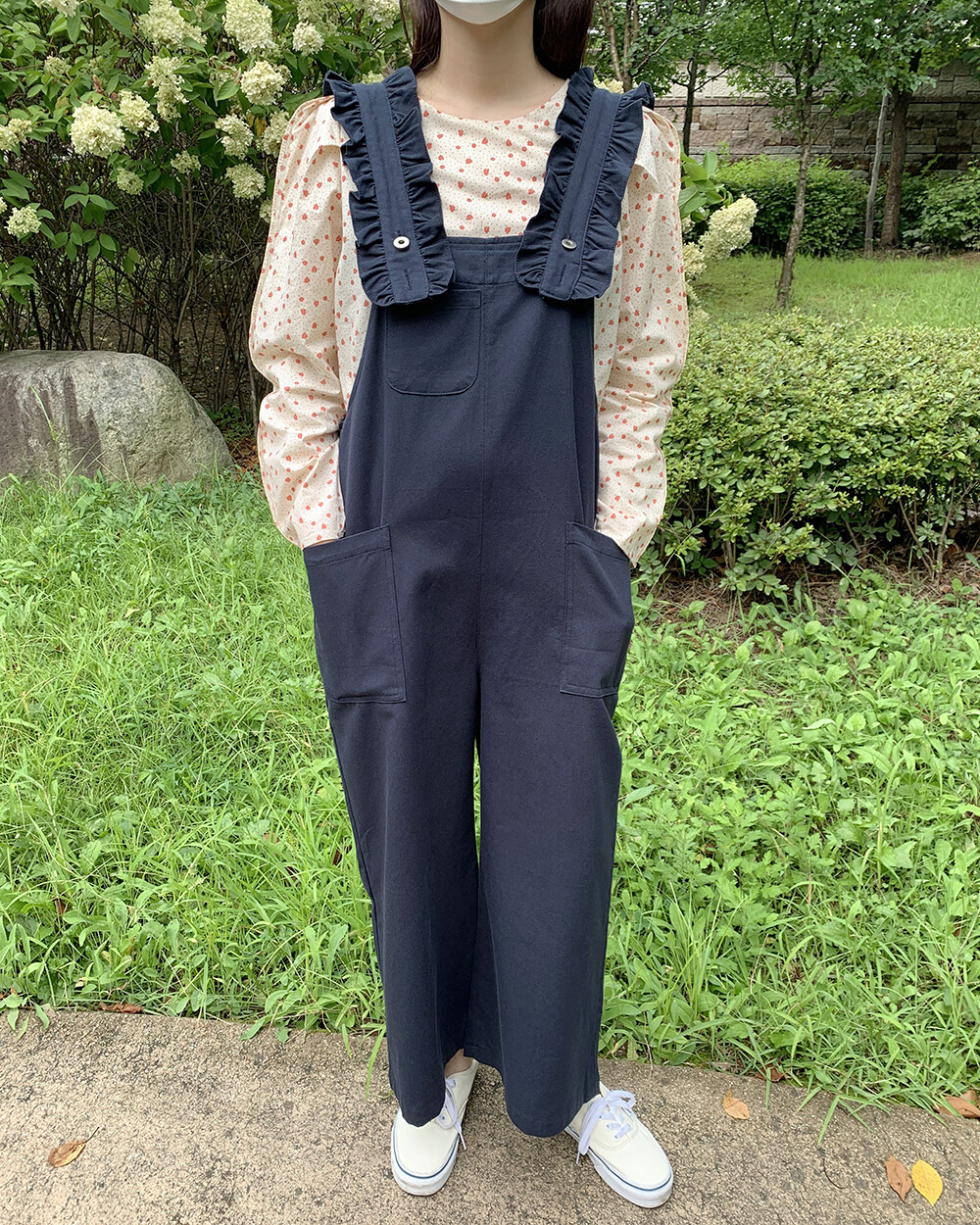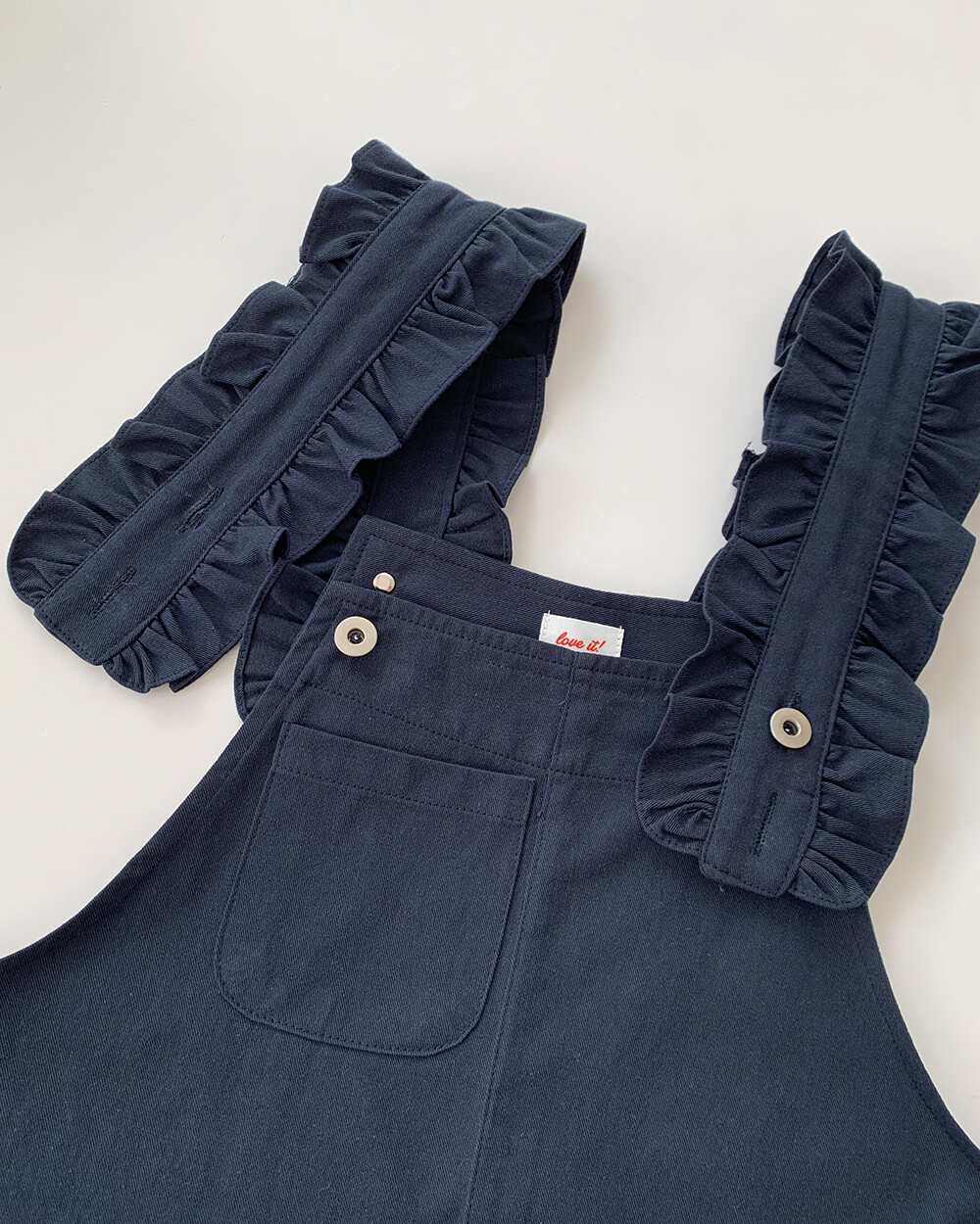 *한정* [자체제작] love it 프릴 8부 오버롤팬츠