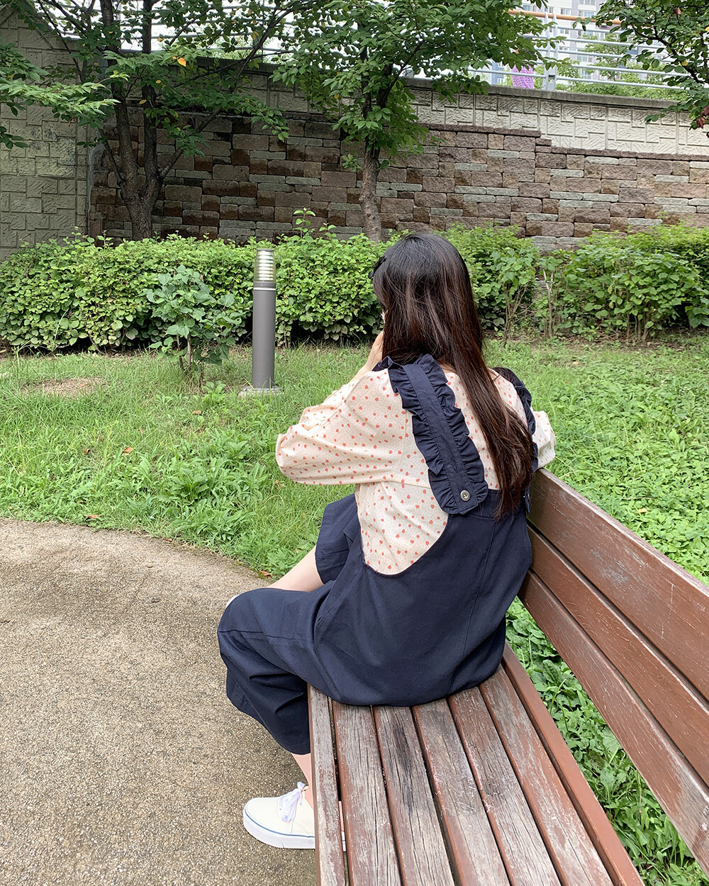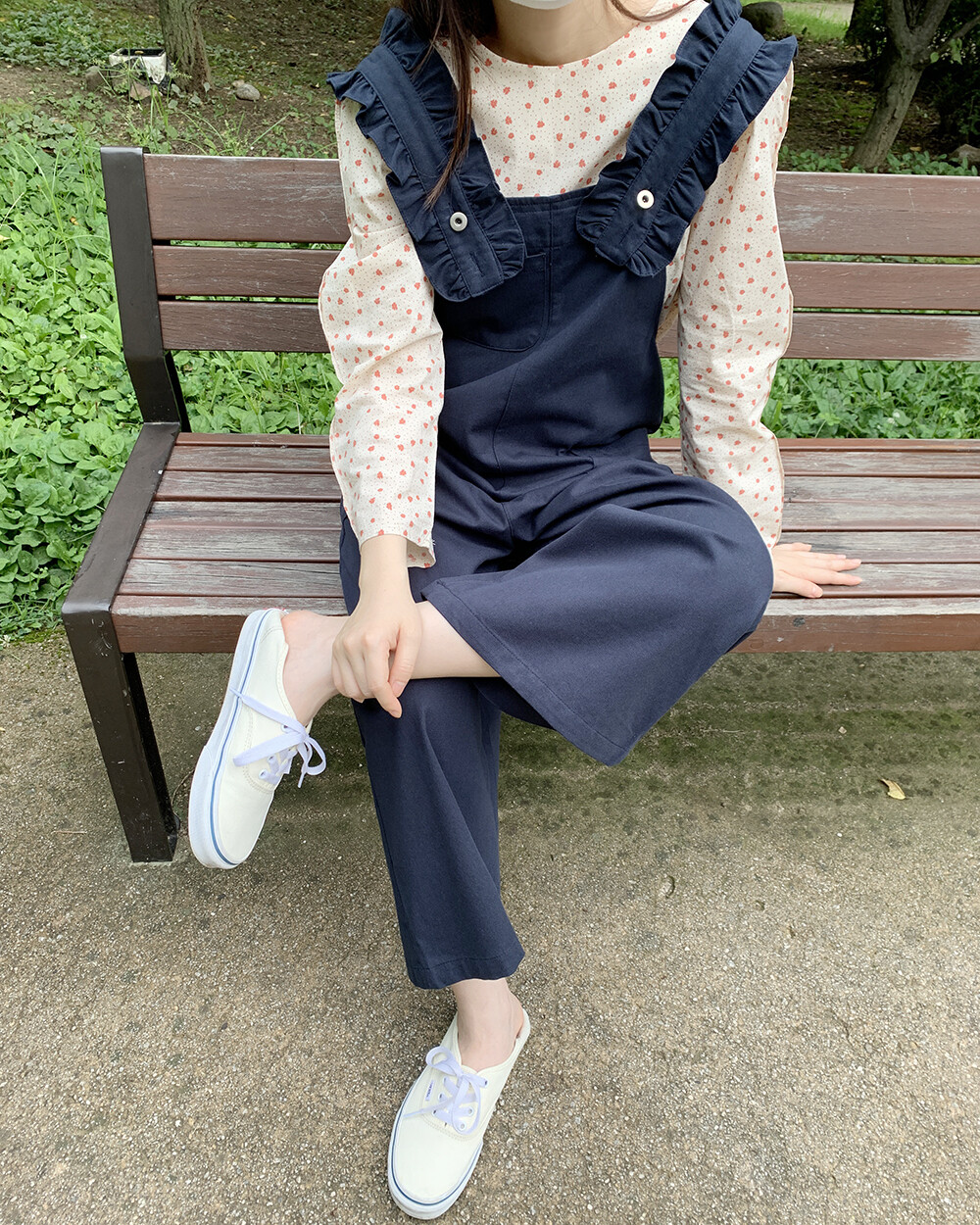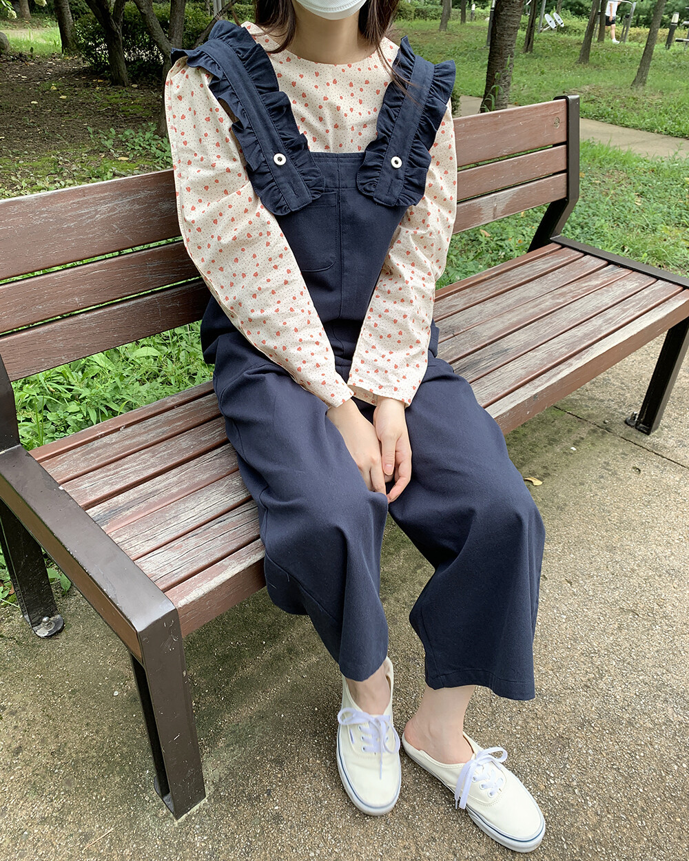 *한정* [자체제작] love it 프릴 8부 오버롤팬츠