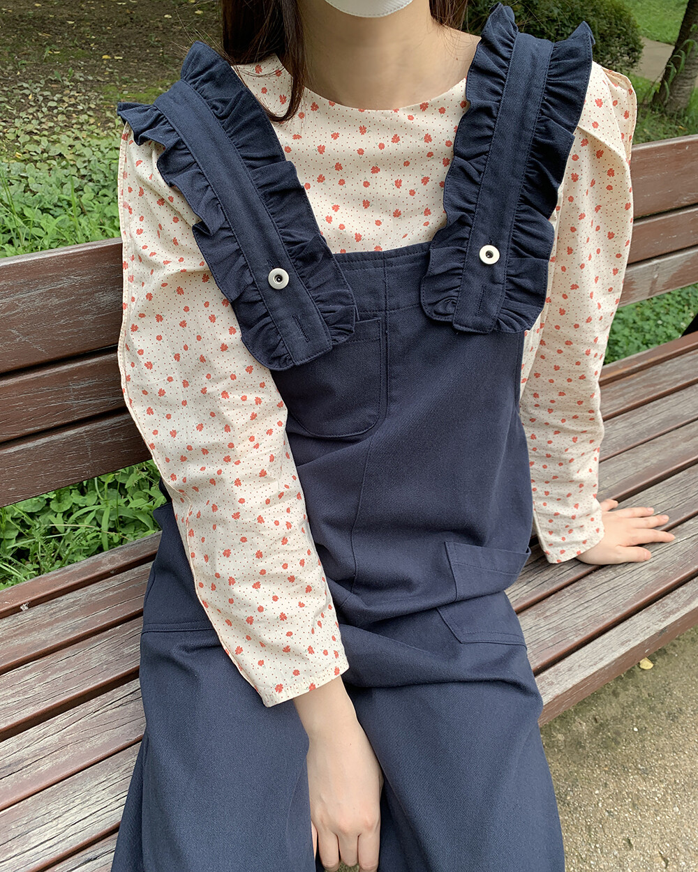어깨부분 큼직한 프릴장식으로 여리여리해보이면서