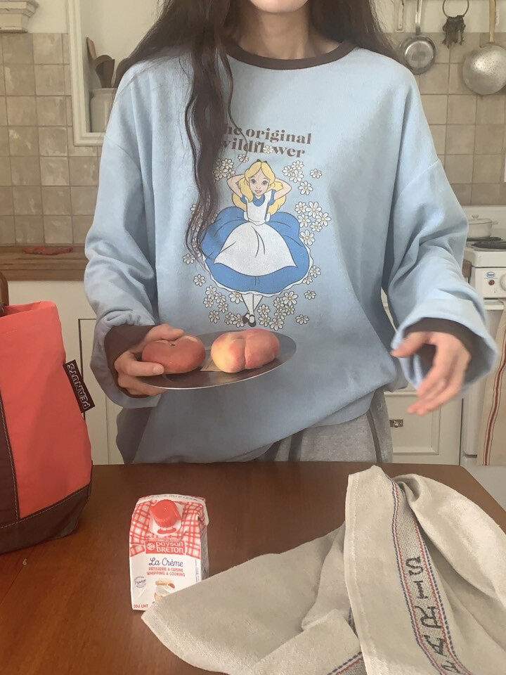 동화 속에서 막 튀어나온 듯한 감성의 앨리스 프린팅 티셔츠예요.