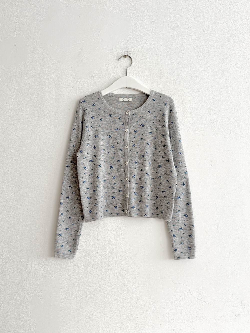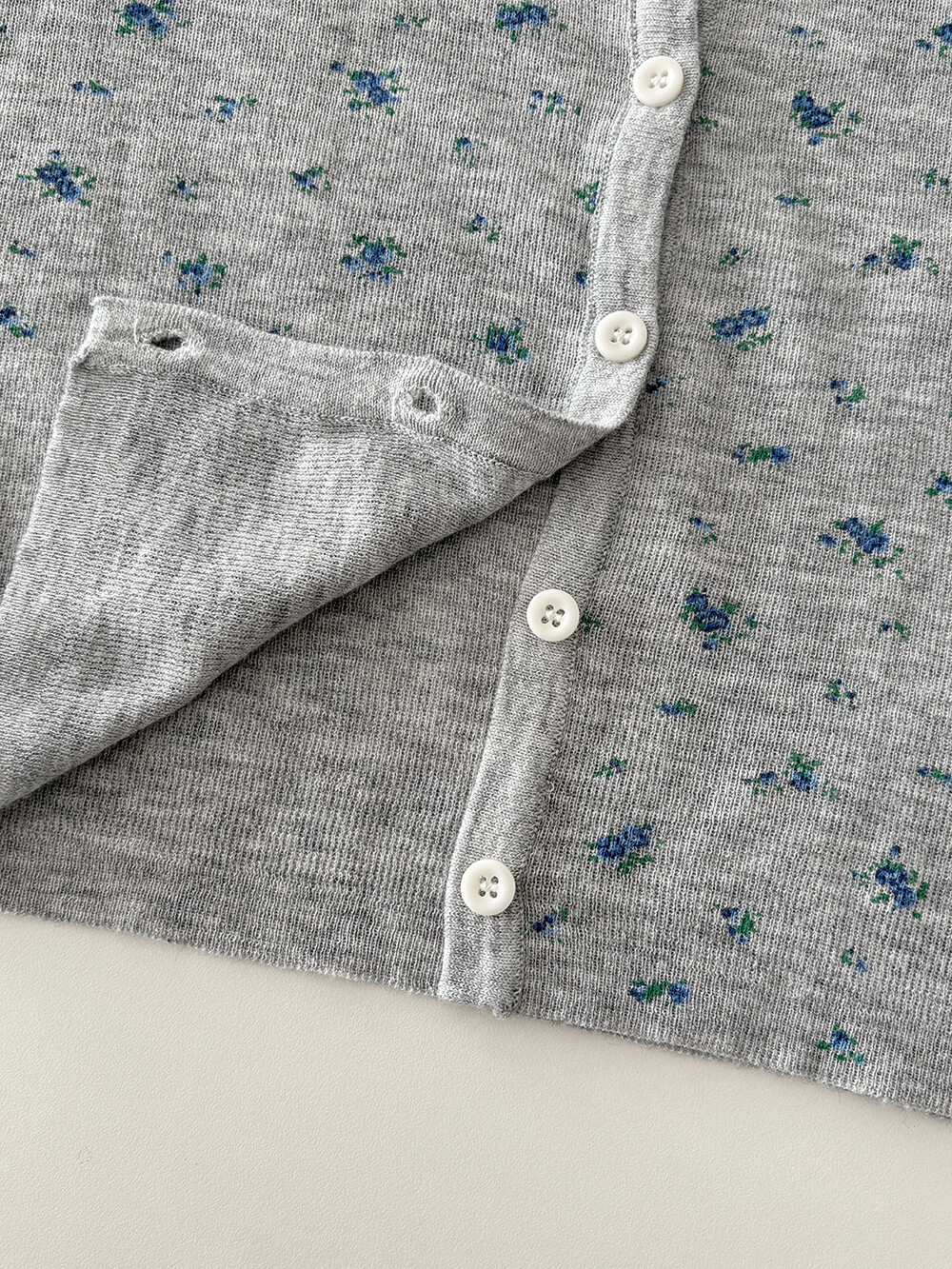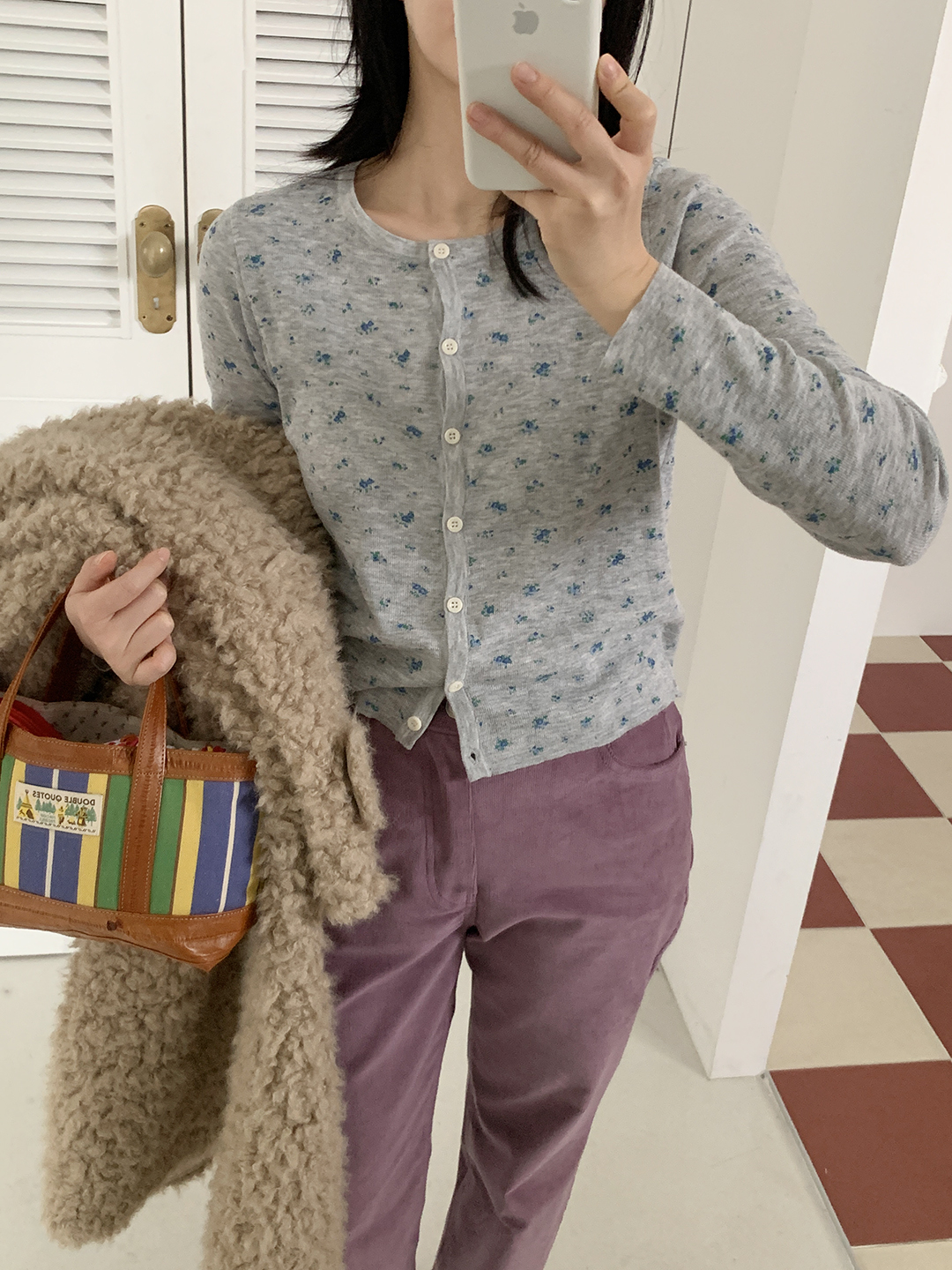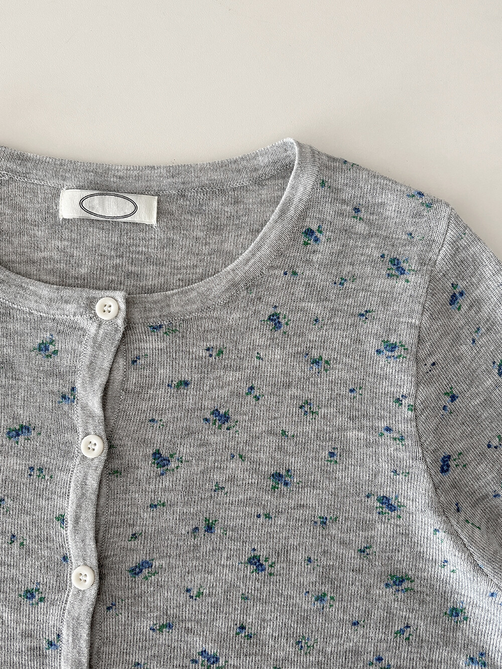 차분한 그레이 톤 위로 미니 플라워 패턴이