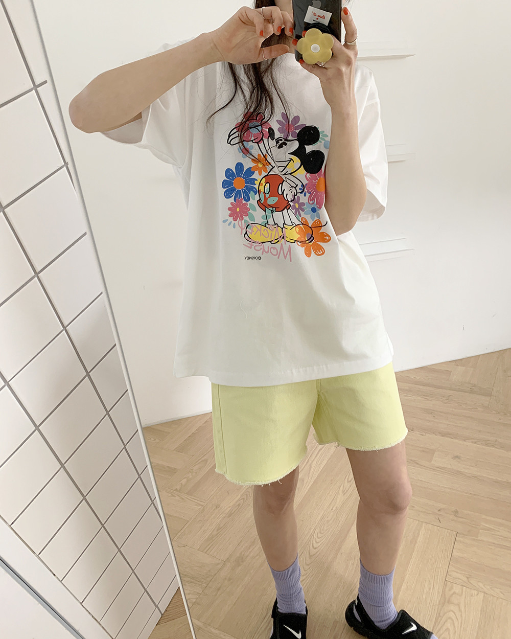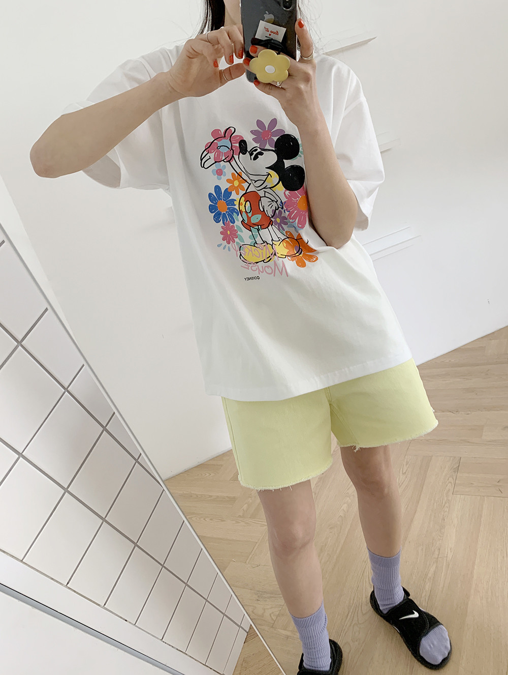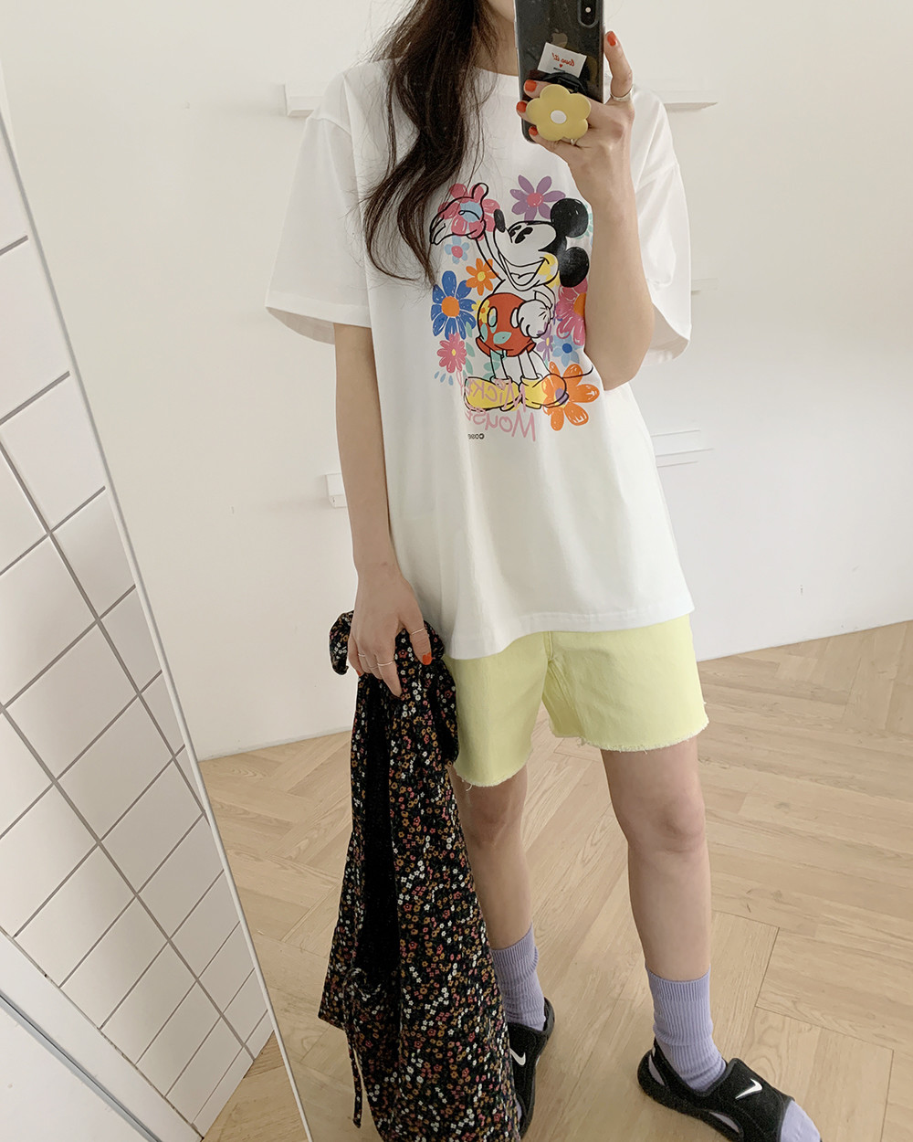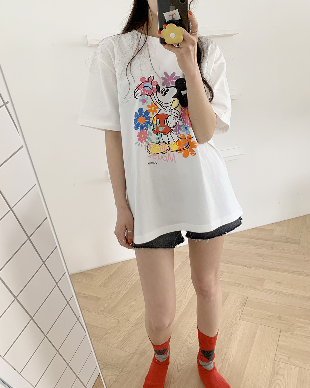 어서와 꽃미키는 처음이지..? 바이효니 러브잇만의 감성으로 다시 태어난 디즈니정품 미키 반팔티셔츠예요! 탄탄하면서도 보송한 면 100% 소재로 오래도록 입기 좋구요 박시한 오버핏으로 남여공용으로 남친, 남편과 함께 커플로 입어주셔도 너무 예쁠 것 같아요~ 실물이 오백배 더 예쁜데 해필 촬영하는날이 비오는 우중충날이라서 너무 아쉬었지만 이래나 저래나 너무 예쁜걸!!!!! 청바지, 면바지, 레이어드원피스, 오버롤즈, 조거팬츠, 츄리닝 등등 다양하게 코디하기 좋구요 한여름엔 쇼츠와 함께 하의실종느낌으로 입어주셔도 너무 예쁠 것 같아요 내가 만들어서 더 애정이 갈수도 있겠지만 진짜 객관적으로 봤을때 이거 안사면 바보예요 장점 365개 정도 더있는데 계속하면 재수없을거같아서 그만해야지.. 행쇼!