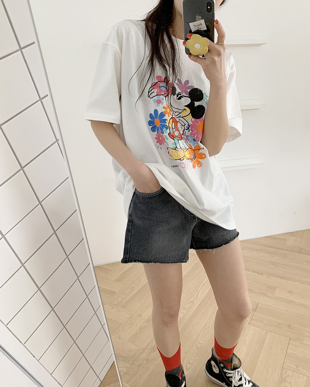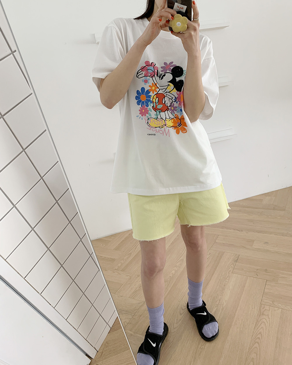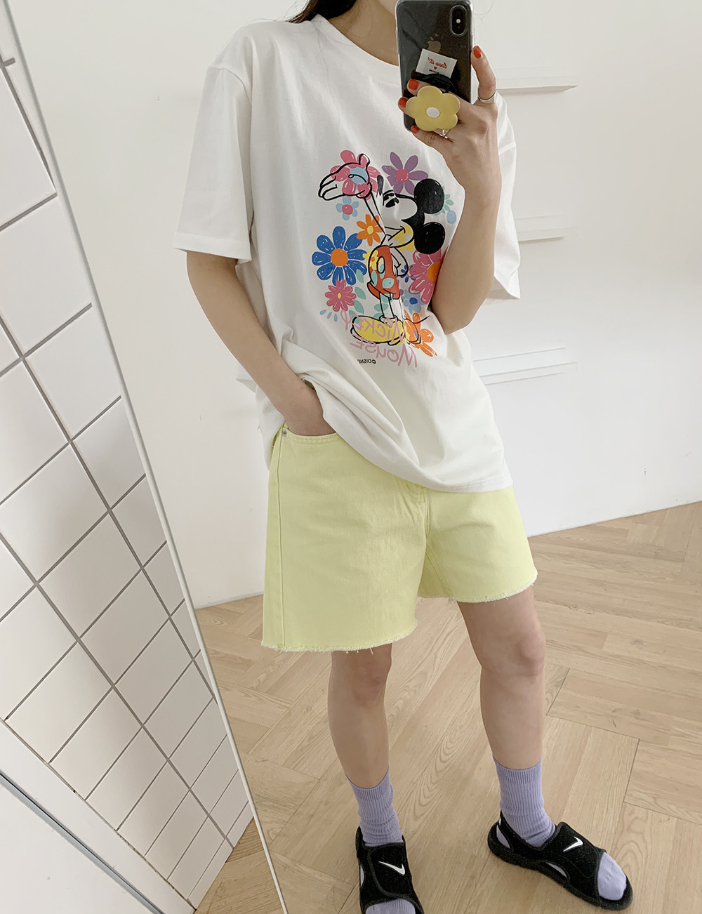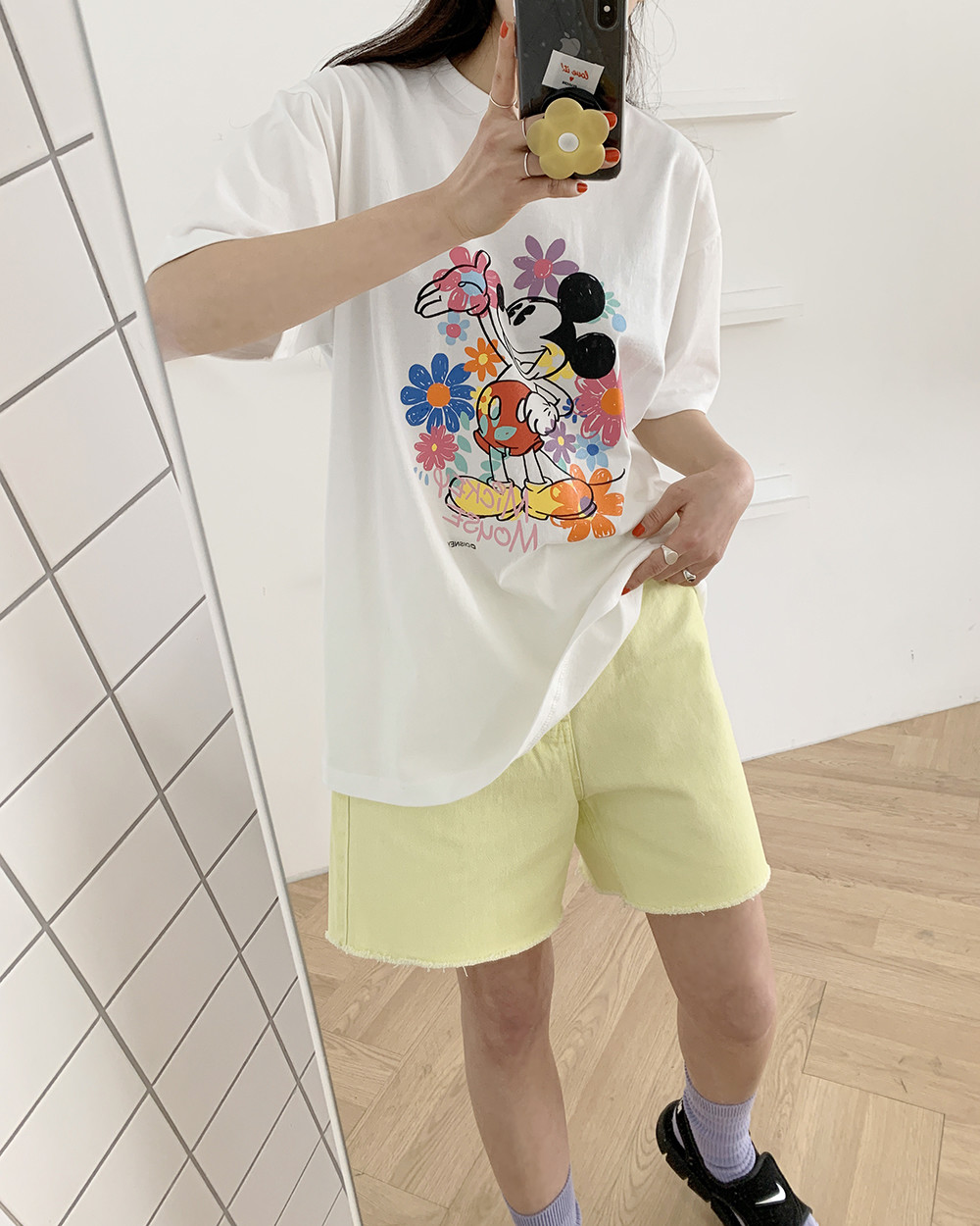 어서와 꽃미키는 처음이지..? 바이효니 러브잇만의 감성으로 다시 태어난 디즈니정품 미키 반팔티셔츠예요! 탄탄하면서도 보송한 면 100% 소재로 오래도록 입기 좋구요 박시한 오버핏으로 남여공용으로 남친, 남편과 함께 커플로 입어주셔도 너무 예쁠 것 같아요~ 실물이 오백배 더 예쁜데 해필 촬영하는날이 비오는 우중충날이라서 너무 아쉬었지만 이래나 저래나 너무 예쁜걸!!!!! 청바지, 면바지, 레이어드원피스, 오버롤즈, 조거팬츠, 츄리닝 등등 다양하게 코디하기 좋구요 한여름엔 쇼츠와 함께 하의실종느낌으로 입어주셔도 너무 예쁠 것 같아요 내가 만들어서 더 애정이 갈수도 있겠지만 진짜 객관적으로 봤을때 이거 안사면 바보예요 장점 365개 정도 더있는데 계속하면 재수없을거같아서 그만해야지.. 행쇼!
