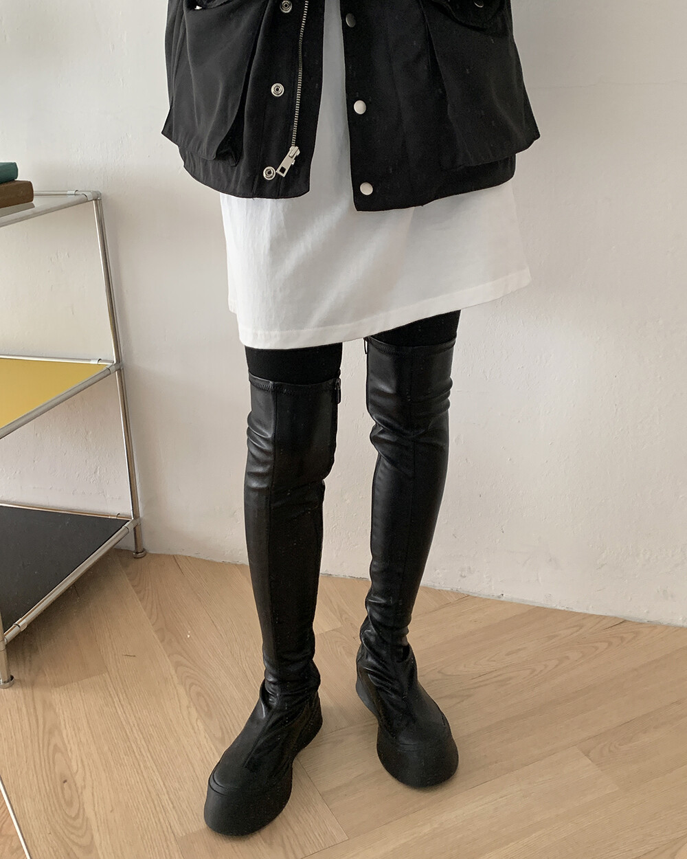 쫀쫀한 스판소재에 무릎위로 올라오는 길이감으로