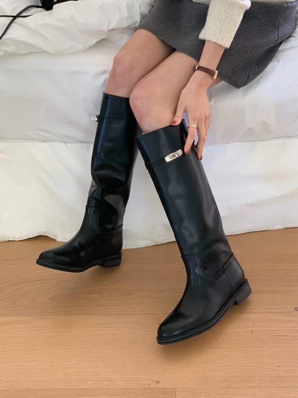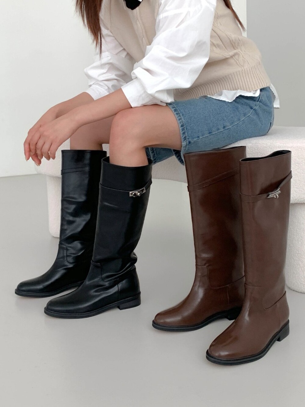 총길이 38 / 발볼 8 / 굽높이 2 / 발목단면 14 / 종아리단면 17 (cm) -235mm기준