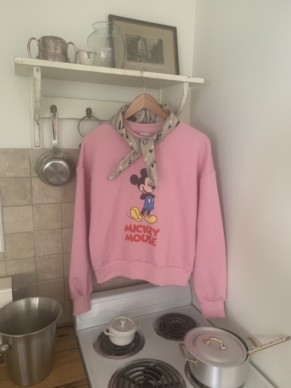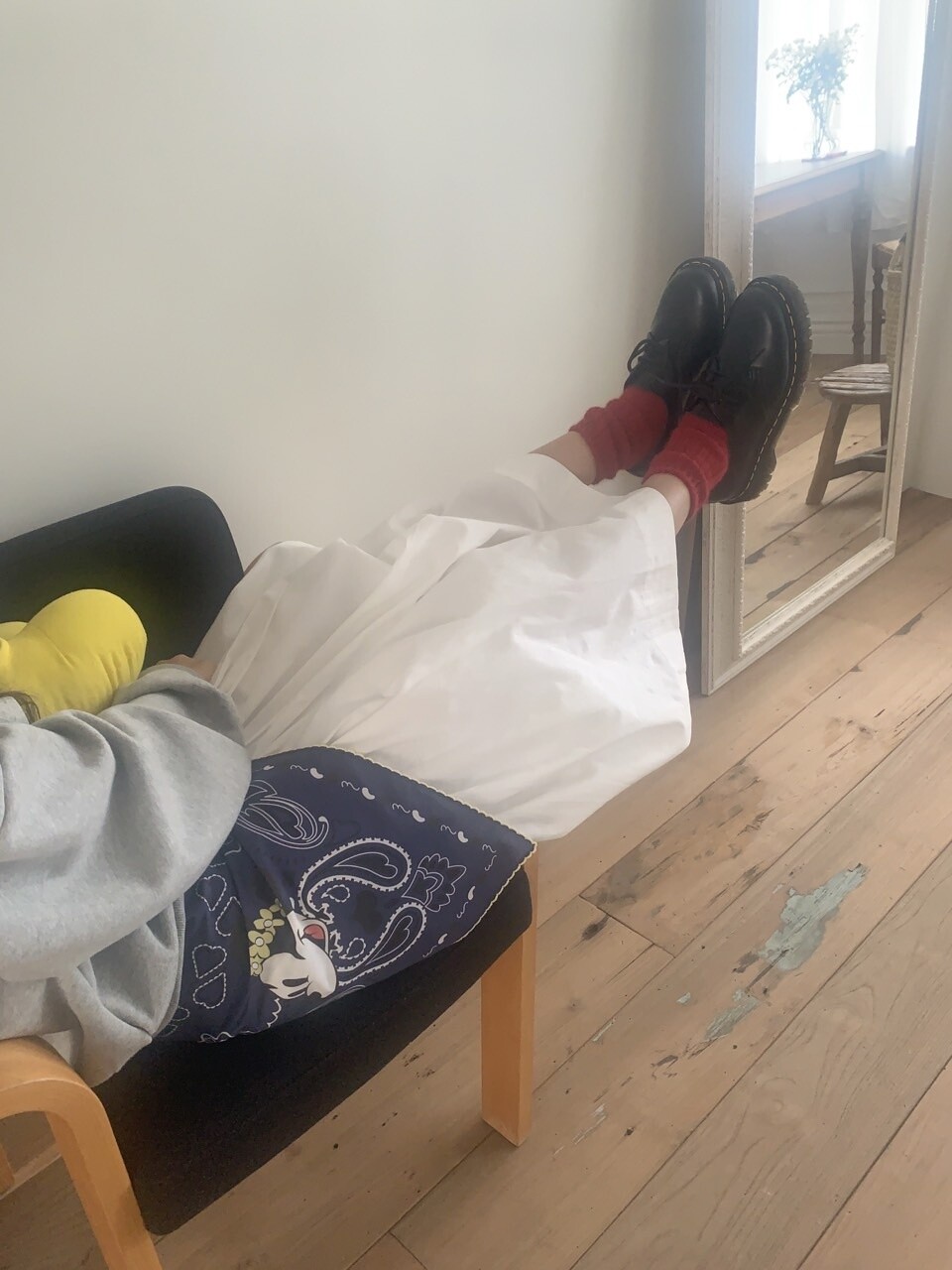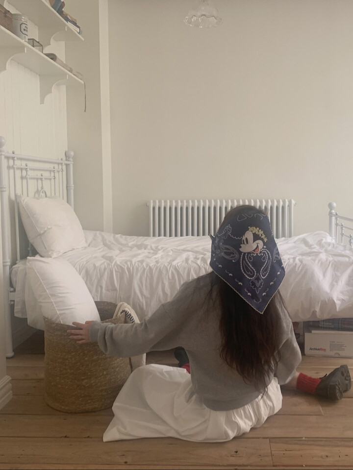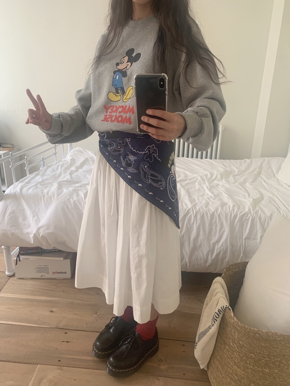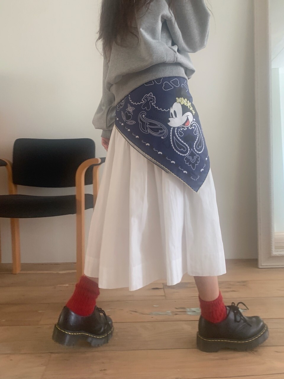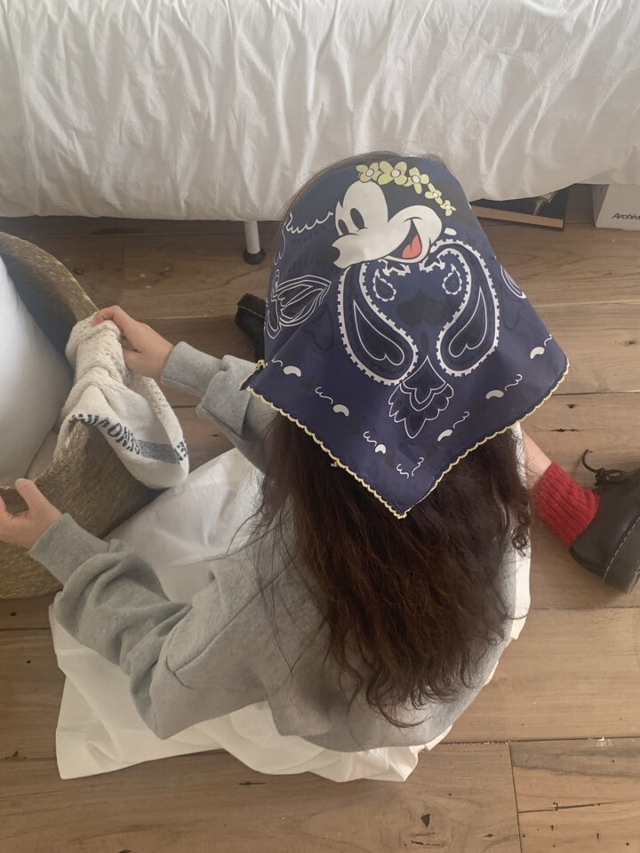 하나만으로도 룩에 포인트가 되는 키치한 무드의 스카프로