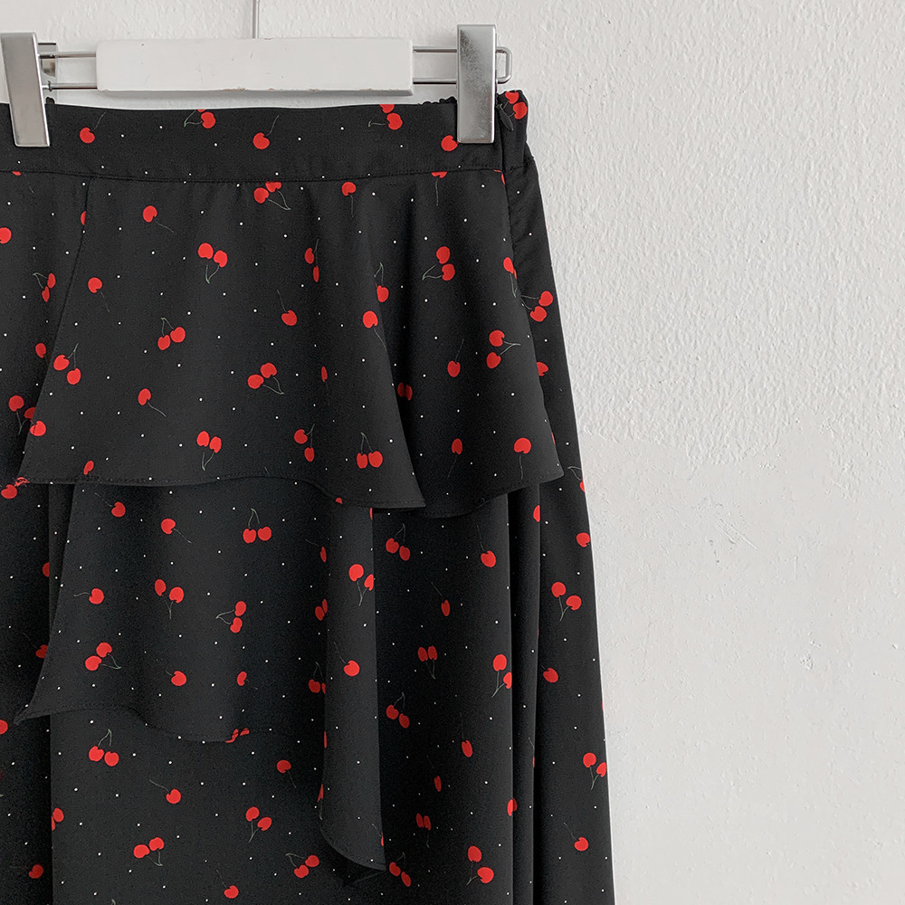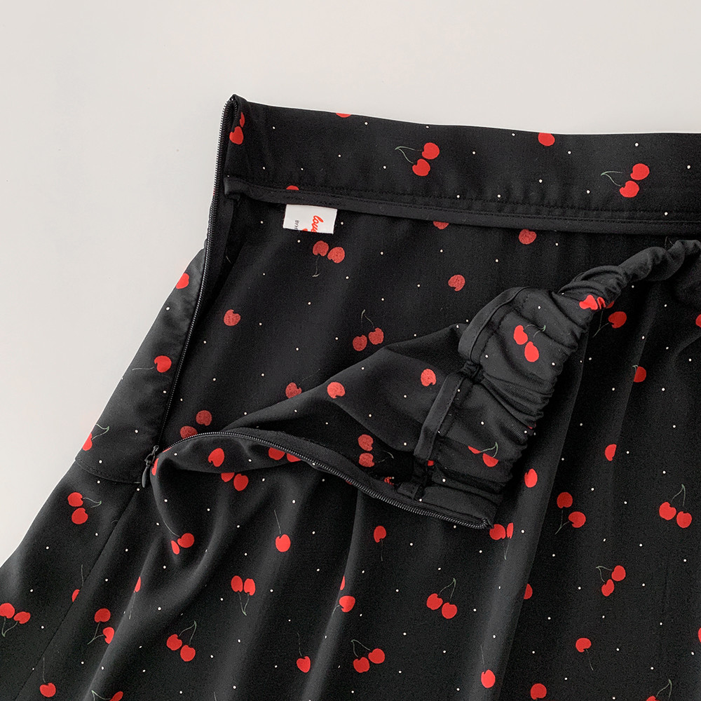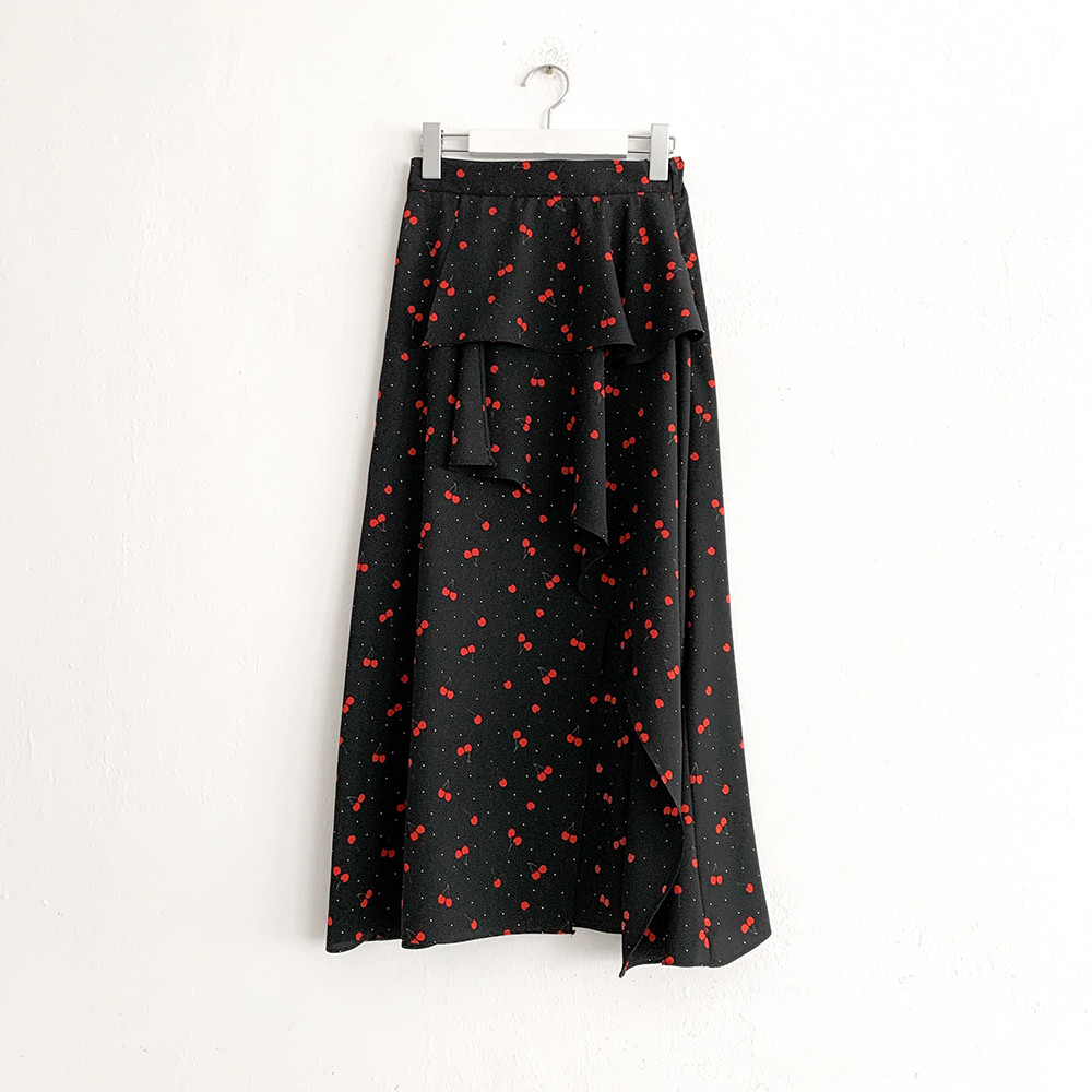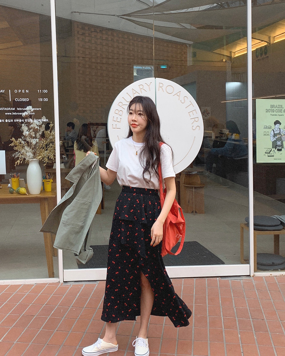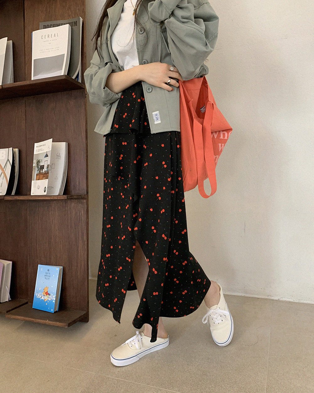 짧은치마는 입고싶지만 나이 서른짤 넘고부터 잘 입질 못하겠고.. 롱롱이는 포기못하고 그리하여 만들게된 언발란스 스커트예요! 차르르 떨어지는 부드러운 폴리소재로 착용감이 너무 좋구요, 여유있는 핏으로 군살들을 가려주면서도 슬쩍이 보이는 다리라인으로 살빠졌니?소리 들을법한 아주 매력적인 아이예요 화사한 토마토레드컬러의 체리패턴으로 아주그냥 러블리하게 연출되구요 허리 뒷밴딩으로 안정감있게 잡아준답니다 스커트 자체만으로도 너무 예뻐서 기본 흰티에다가만 입어주어도 코디끝~~ 저처럼 야상자켓이나 심플한 맨투맨, 니트 등과 함께 다양하게 즐겨주세요 :)