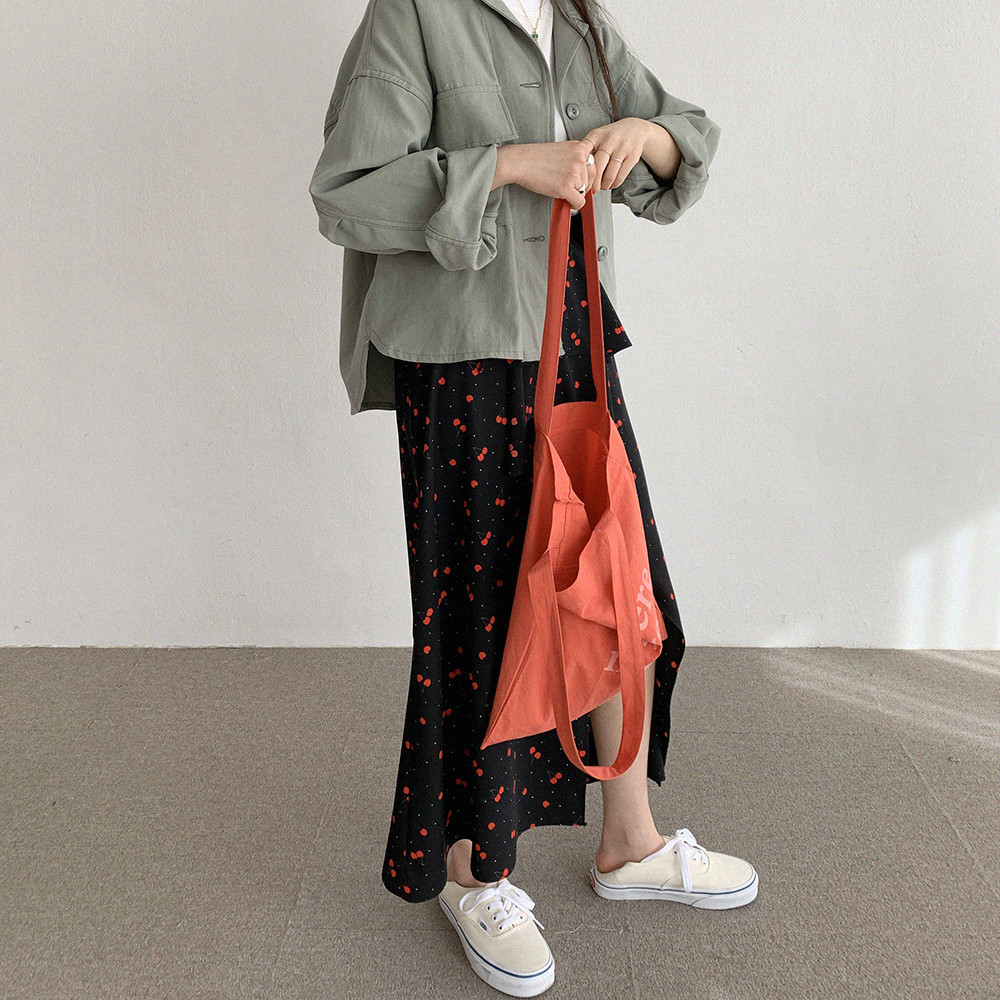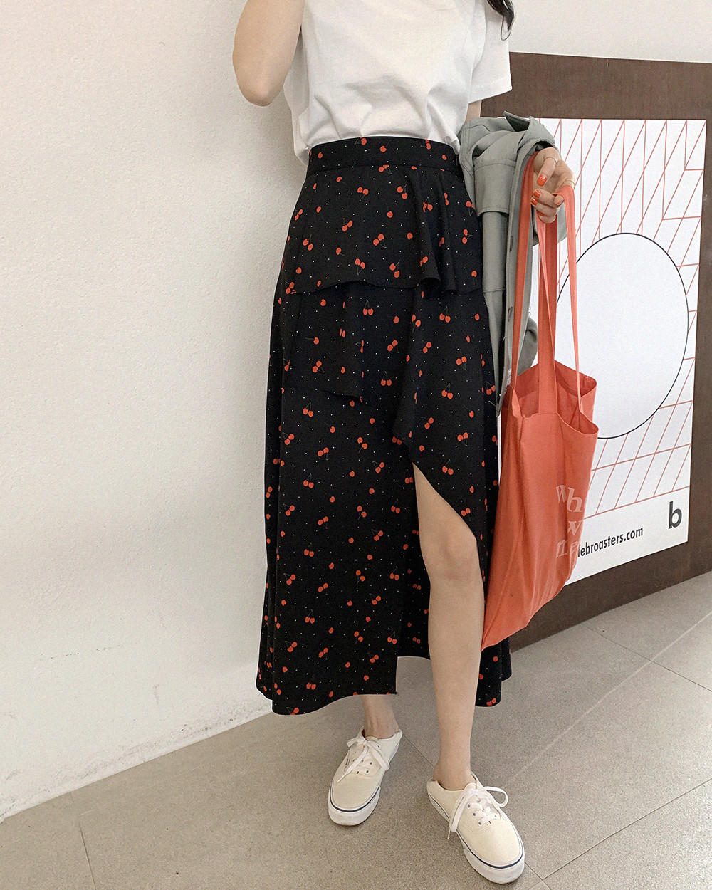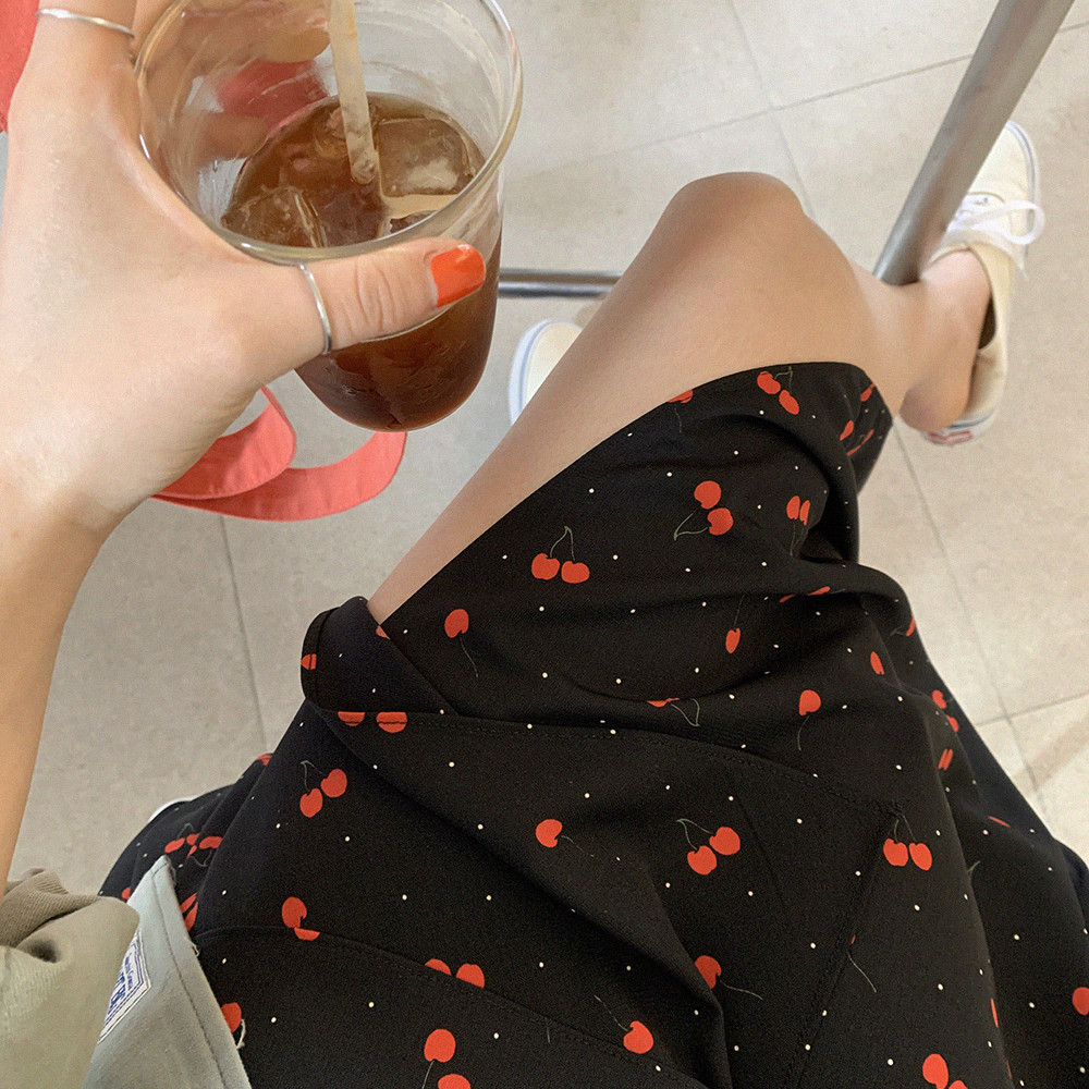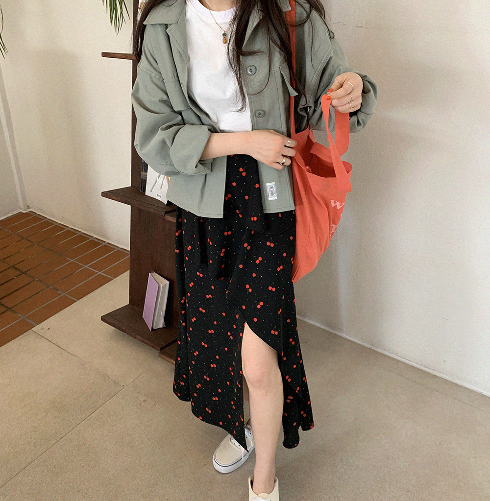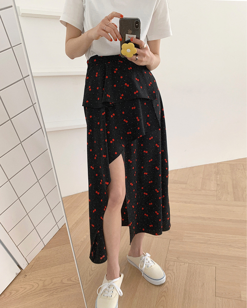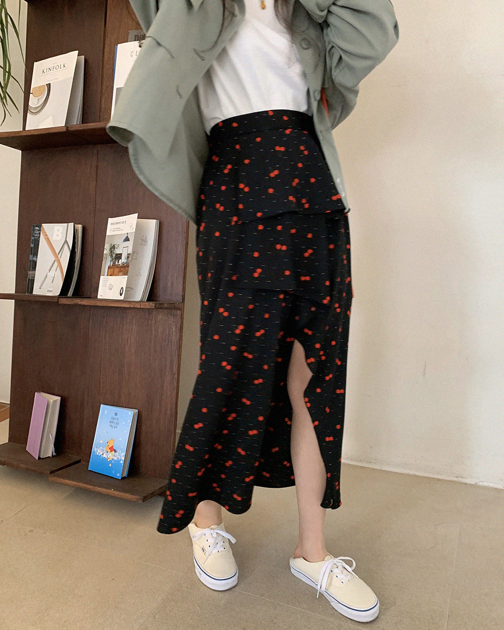 짧은치마는 입고싶지만 나이 서른짤 넘고부터 잘 입질 못하겠고.. 롱롱이는 포기못하고 그리하여 만들게된 언발란스 스커트예요! 차르르 떨어지는 부드러운 폴리소재로 착용감이 너무 좋구요, 여유있는 핏으로 군살들을 가려주면서도 슬쩍이 보이는 다리라인으로 살빠졌니?소리 들을법한 아주 매력적인 아이예요 화사한 토마토레드컬러의 체리패턴으로 아주그냥 러블리하게 연출되구요 허리 뒷밴딩으로 안정감있게 잡아준답니다 스커트 자체만으로도 너무 예뻐서 기본 흰티에다가만 입어주어도 코디끝~~ 저처럼 야상자켓이나 심플한 맨투맨, 니트 등과 함께 다양하게 즐겨주세요 :)