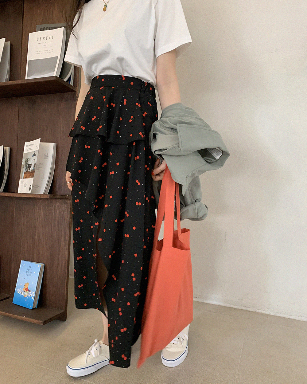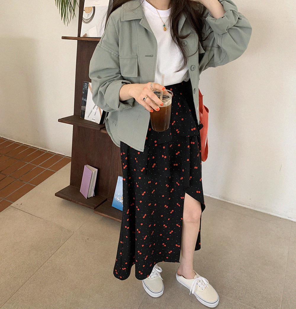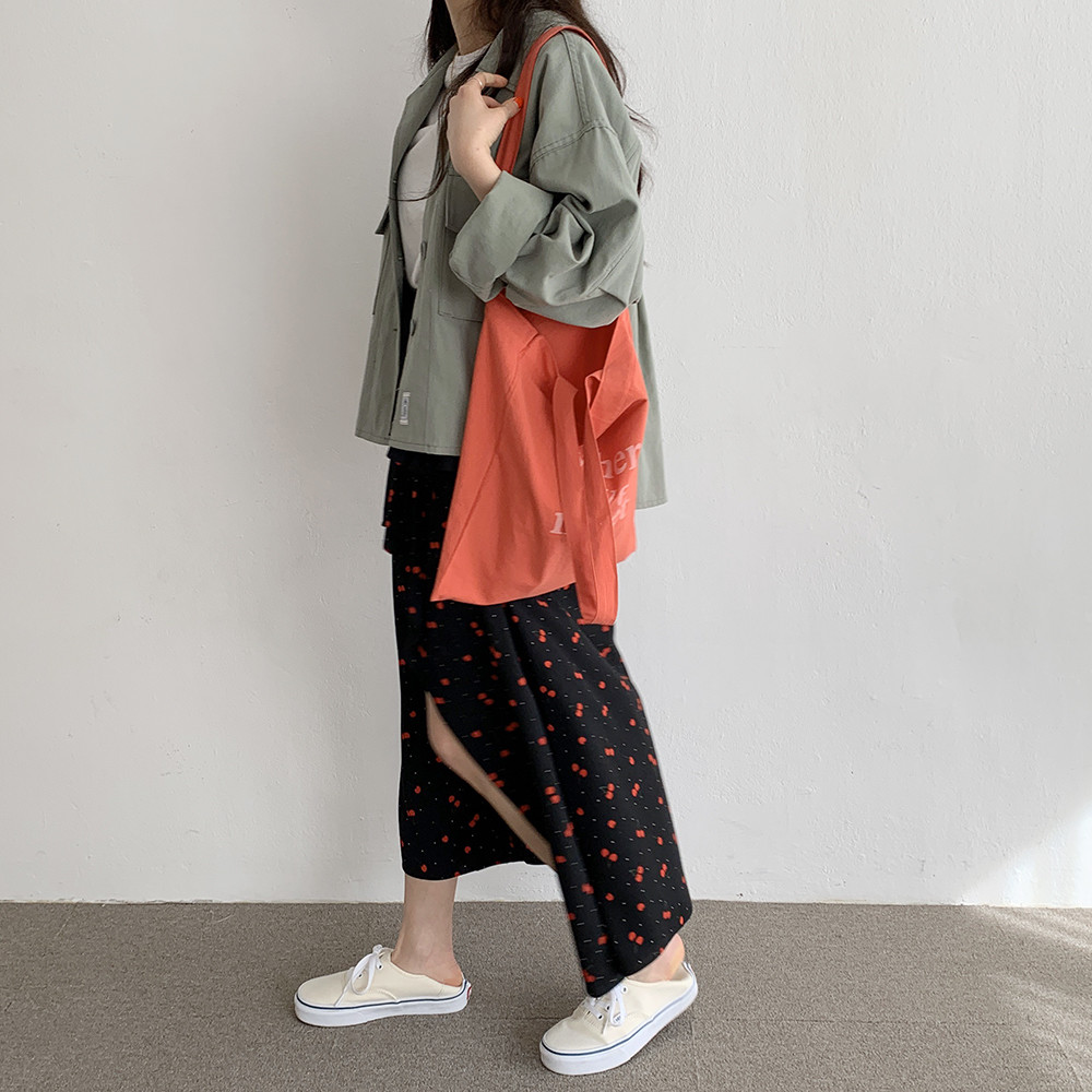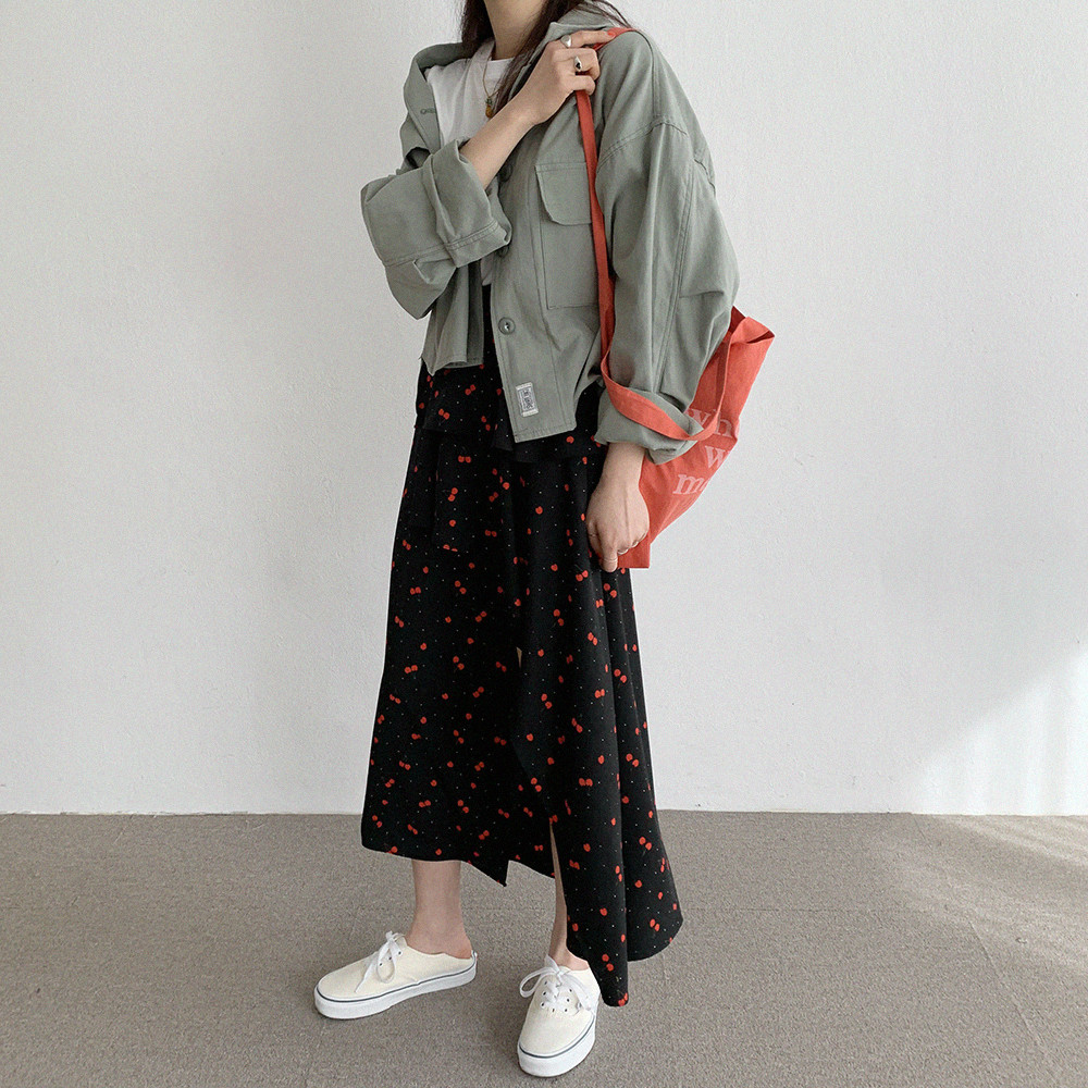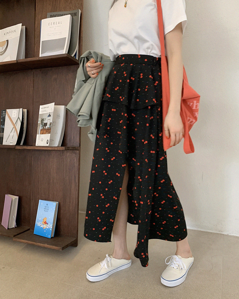 짧은치마는 입고싶지만 나이 서른짤 넘고부터 잘 입질 못하겠고.. 롱롱이는 포기못하고 그리하여 만들게된 언발란스 스커트예요! 차르르 떨어지는 부드러운 폴리소재로 착용감이 너무 좋구요, 여유있는 핏으로 군살들을 가려주면서도 슬쩍이 보이는 다리라인으로 살빠졌니?소리 들을법한 아주 매력적인 아이예요 화사한 토마토레드컬러의 체리패턴으로 아주그냥 러블리하게 연출되구요 허리 뒷밴딩으로 안정감있게 잡아준답니다 스커트 자체만으로도 너무 예뻐서 기본 흰티에다가만 입어주어도 코디끝~~ 저처럼 야상자켓이나 심플한 맨투맨, 니트 등과 함께 다양하게 즐겨주세요 :)