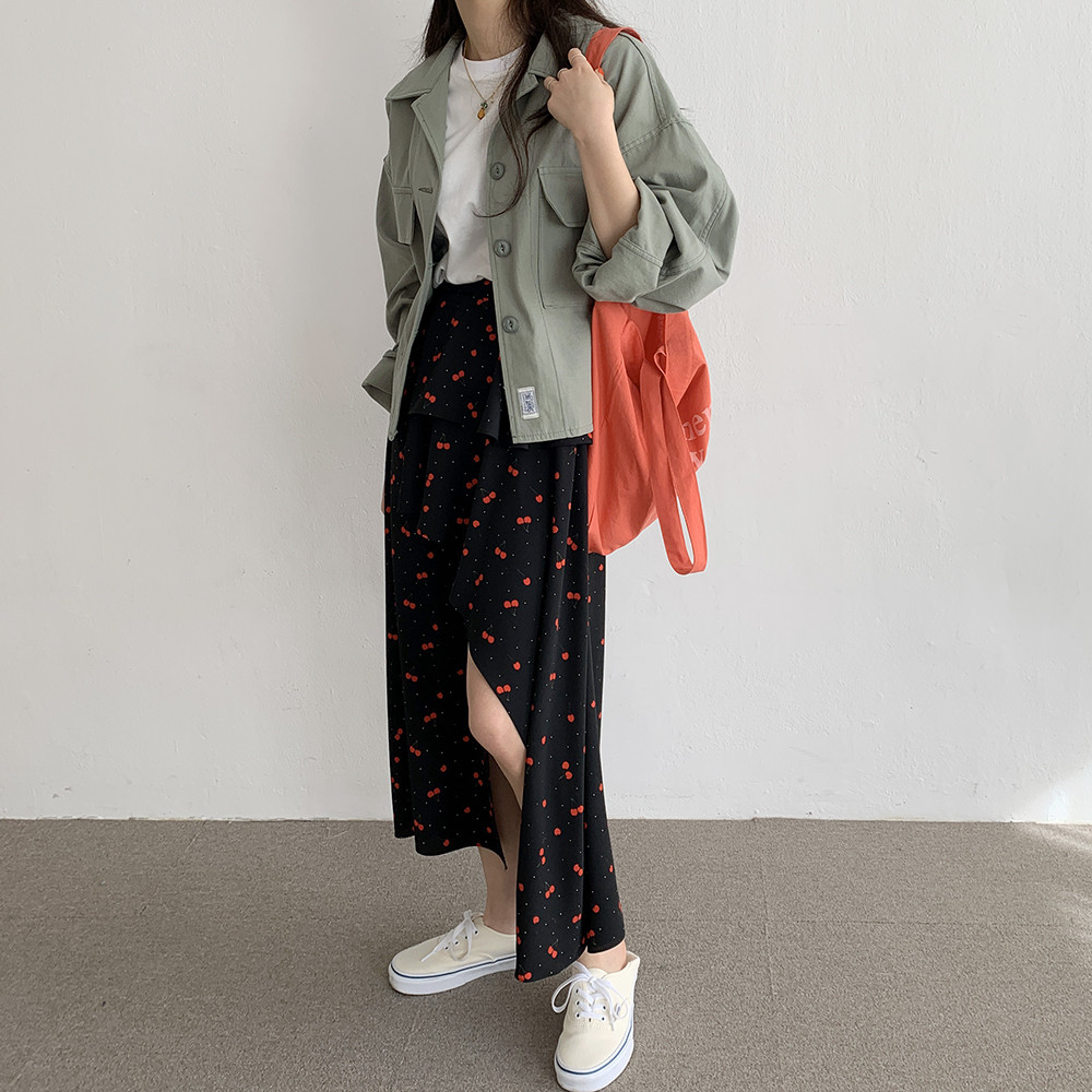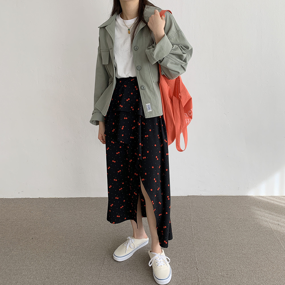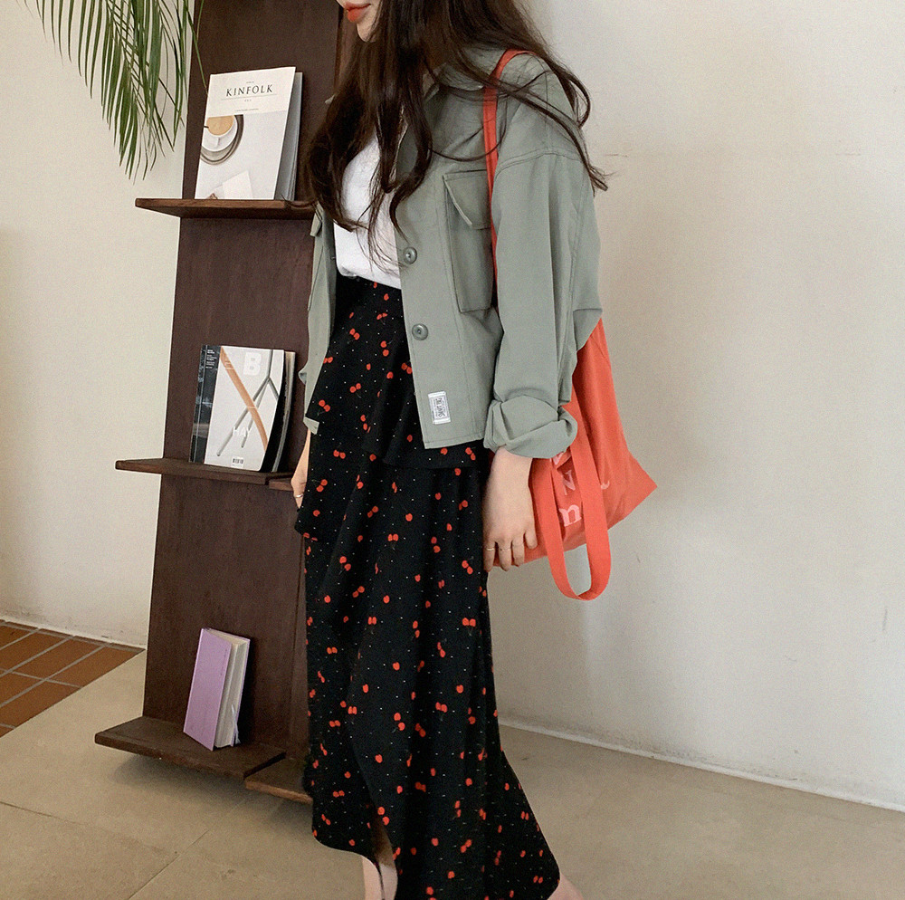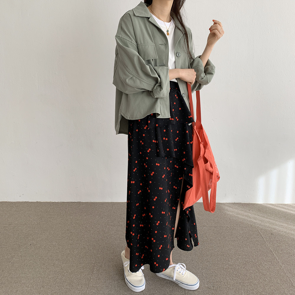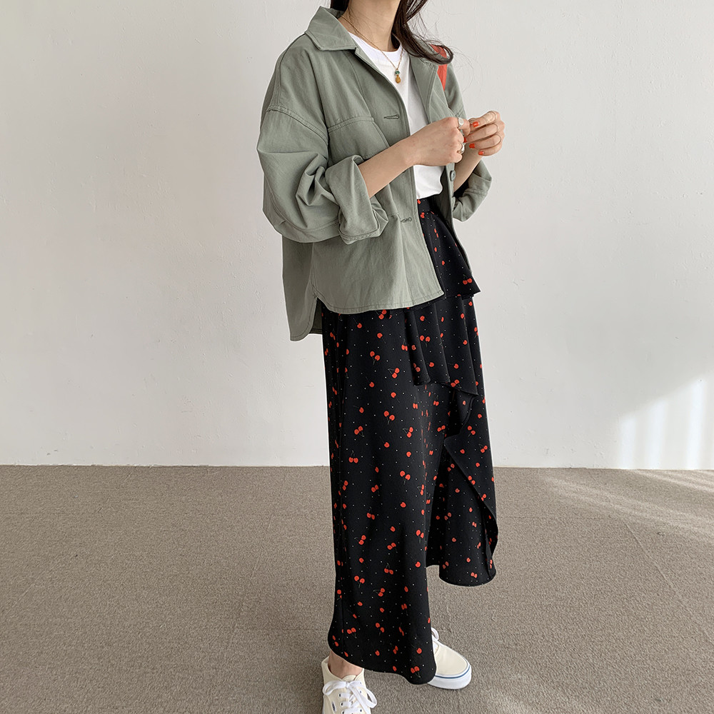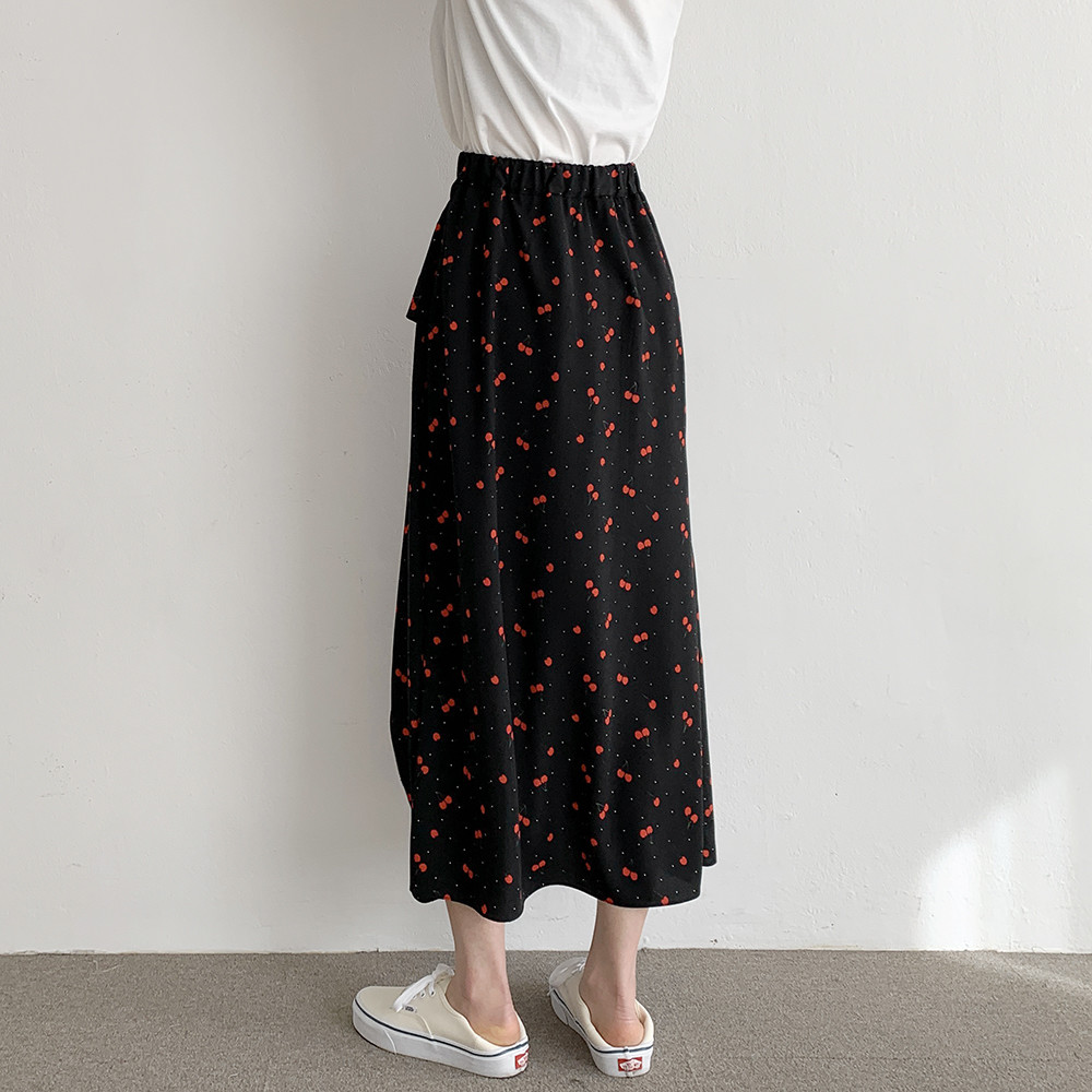 짧은치마는 입고싶지만 나이 서른짤 넘고부터 잘 입질 못하겠고.. 롱롱이는 포기못하고 그리하여 만들게된 언발란스 스커트예요! 차르르 떨어지는 부드러운 폴리소재로 착용감이 너무 좋구요, 여유있는 핏으로 군살들을 가려주면서도 슬쩍이 보이는 다리라인으로 살빠졌니?소리 들을법한 아주 매력적인 아이예요 화사한 토마토레드컬러의 체리패턴으로 아주그냥 러블리하게 연출되구요 허리 뒷밴딩으로 안정감있게 잡아준답니다 스커트 자체만으로도 너무 예뻐서 기본 흰티에다가만 입어주어도 코디끝~~ 저처럼 야상자켓이나 심플한 맨투맨, 니트 등과 함께 다양하게 즐겨주세요 :)