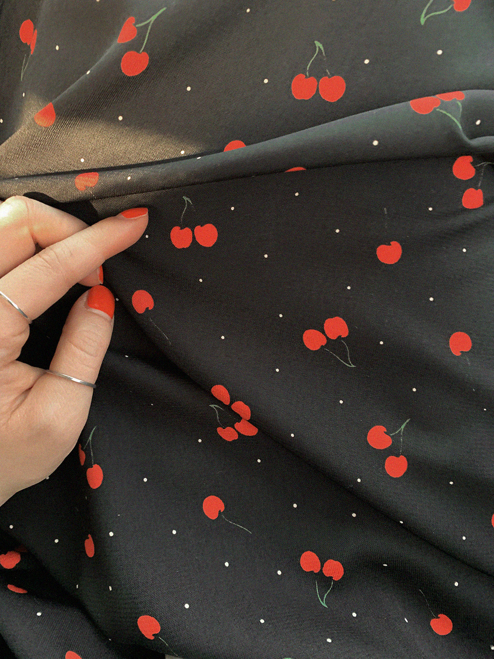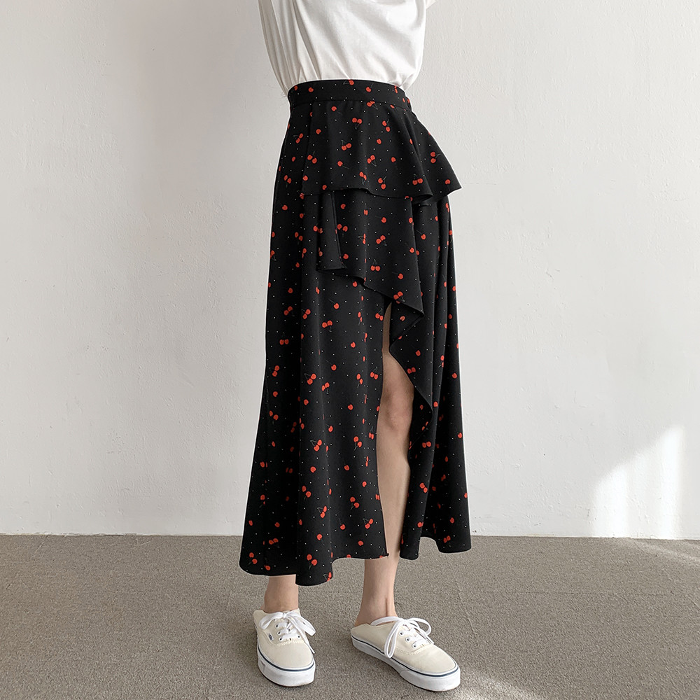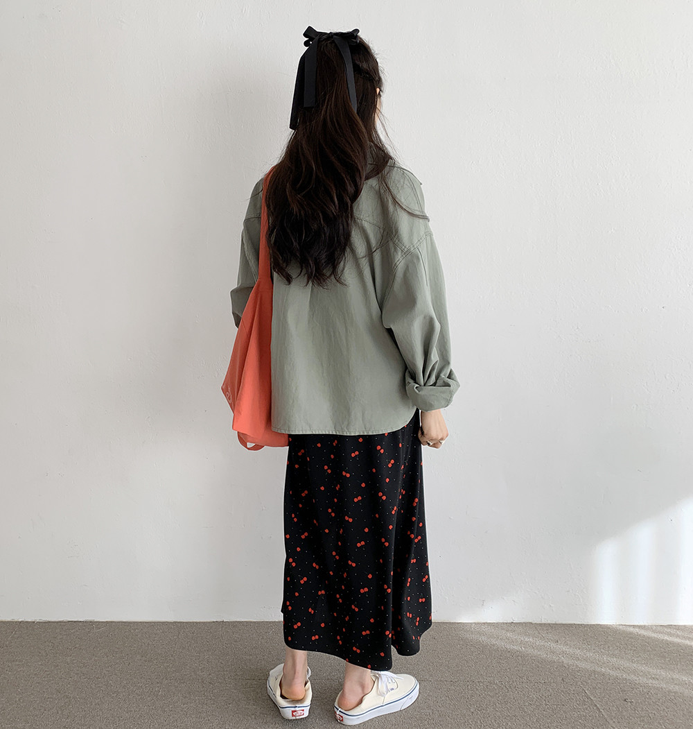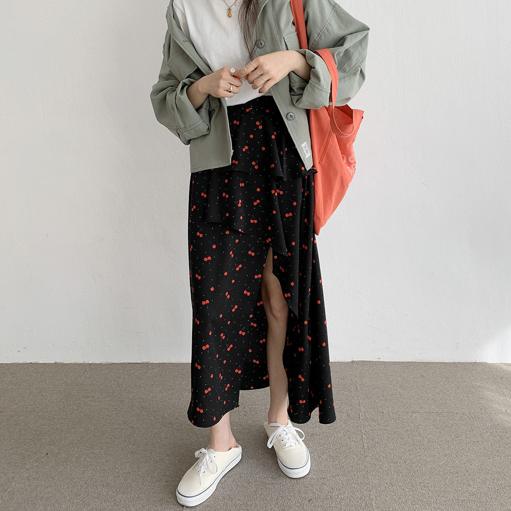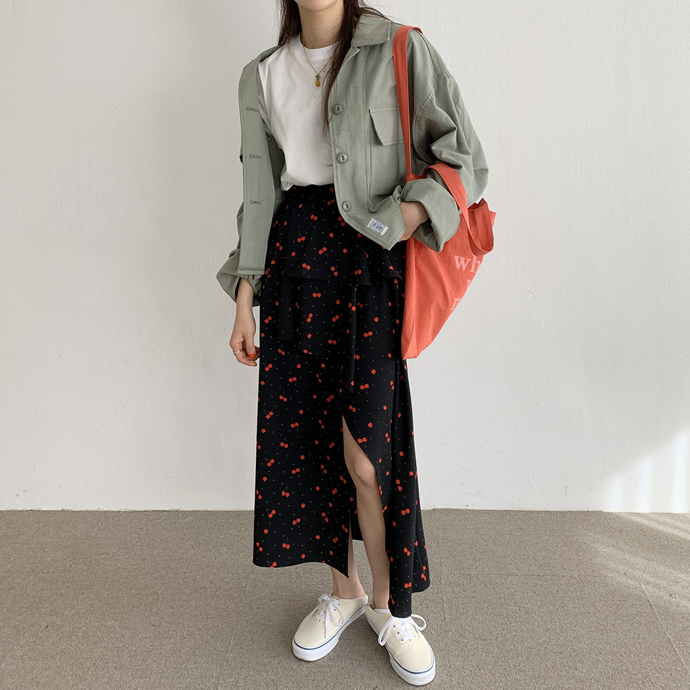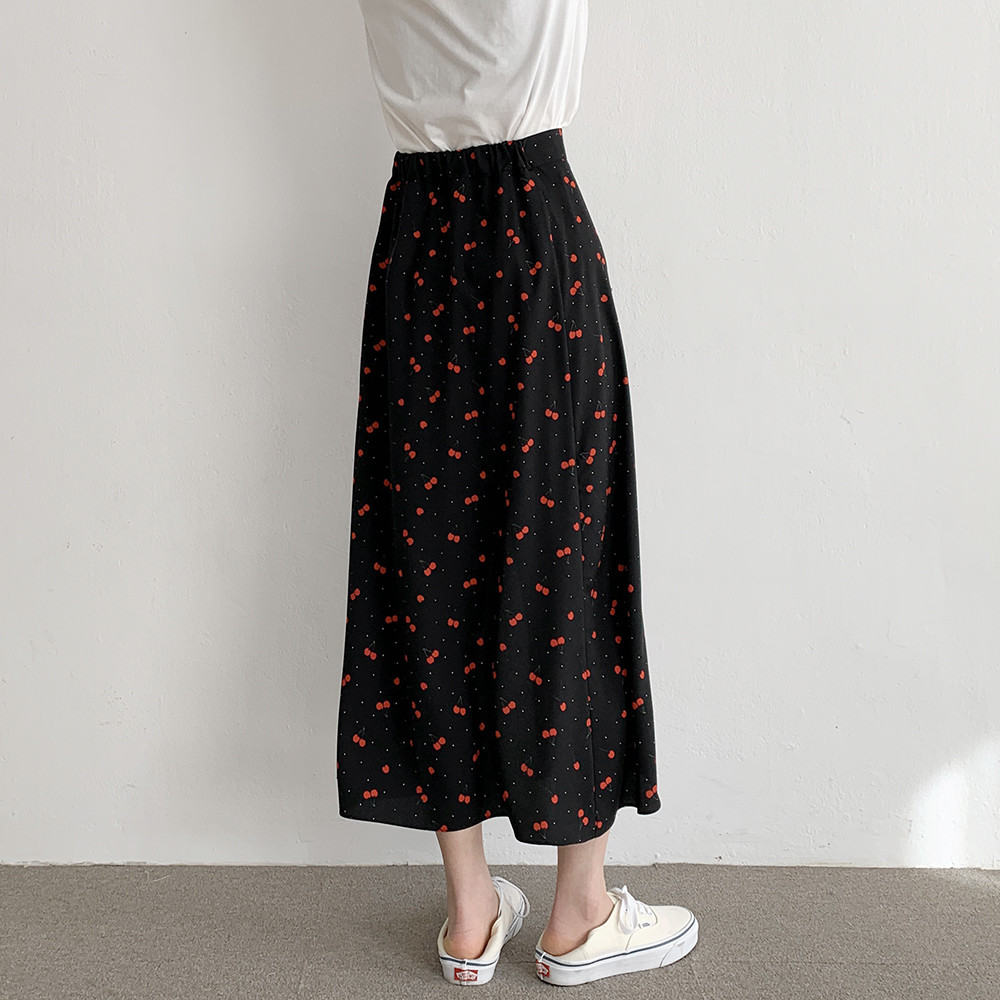짧은치마는 입고싶지만 나이 서른짤 넘고부터 잘 입질 못하겠고.. 롱롱이는 포기못하고 그리하여 만들게된 언발란스 스커트예요! 차르르 떨어지는 부드러운 폴리소재로 착용감이 너무 좋구요, 여유있는 핏으로 군살들을 가려주면서도 슬쩍이 보이는 다리라인으로 살빠졌니?소리 들을법한 아주 매력적인 아이예요 화사한 토마토레드컬러의 체리패턴으로 아주그냥 러블리하게 연출되구요 허리 뒷밴딩으로 안정감있게 잡아준답니다 스커트 자체만으로도 너무 예뻐서 기본 흰티에다가만 입어주어도 코디끝~~ 저처럼 야상자켓이나 심플한 맨투맨, 니트 등과 함께 다양하게 즐겨주세요 :)