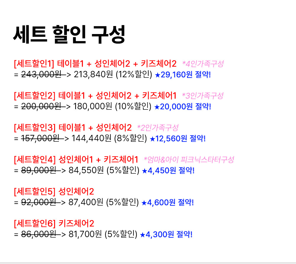 [세트할인1] 테이블1+성인체어2+키즈체어2