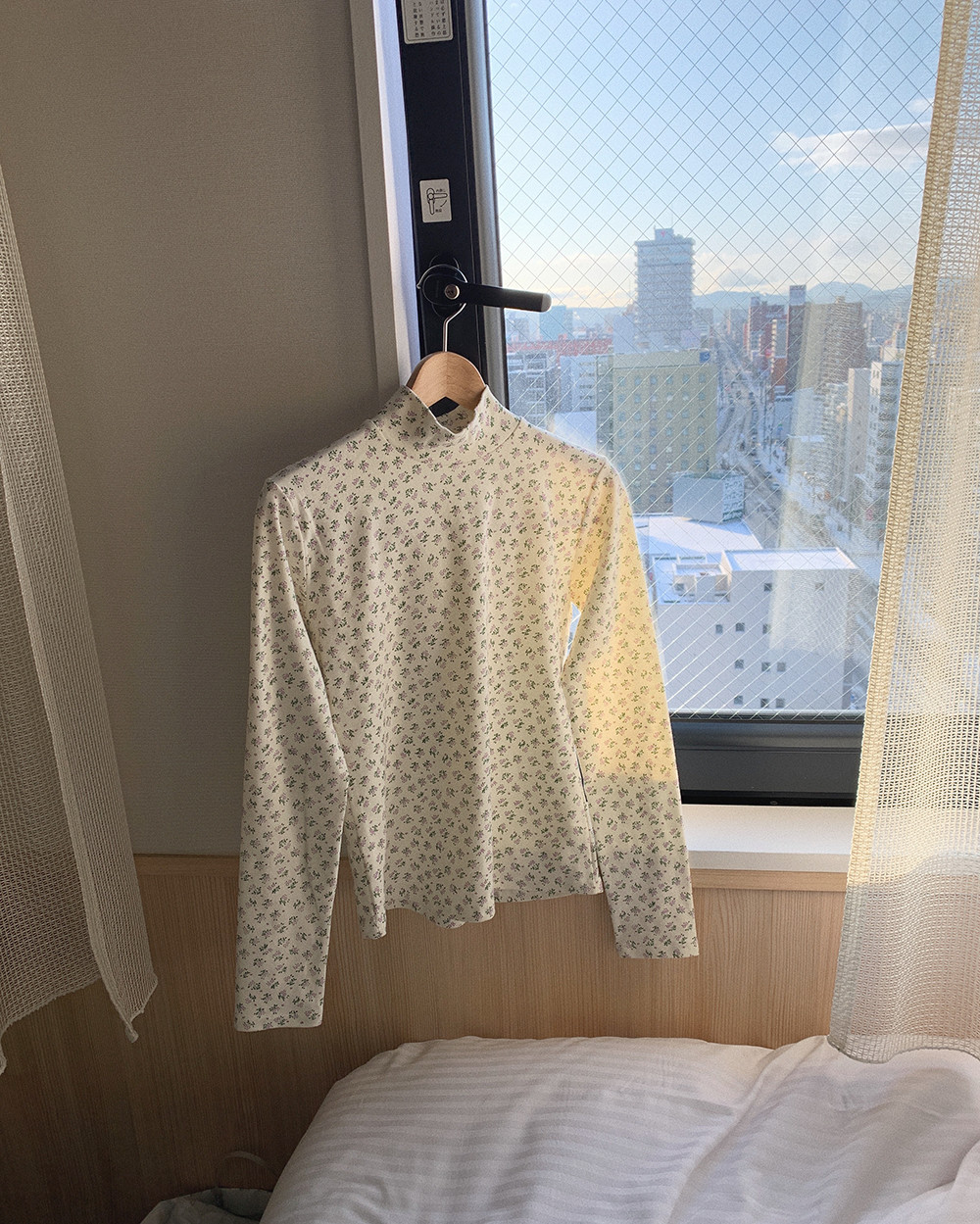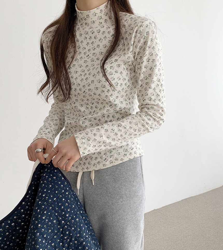 코지한 느낌이 가득! 사랑스러우면서도 따뜻하게 연출하기 좋은 폴라티셔츠예요 일단 소재는 진짜 욕심내서 좋은거쓰고싶어요 나이가 하나둘 먹다보니 옛어른들말씀 하나 틀린게 없었숴... 쫀쫀하면서 아주 부드러운 면 100 소재로 착용감 너무 좋구요~ 피부 예민하신 분들도 500% 입기 좋으실거예요 :) 피치기모겉감으로 따스해보이면서 보온성을 더해주구요, 잔잔한 플라워 패턴으로 러블리한 무드로 연출되어요 긴목폴라티가 답답하신 분들도 계셔서 넥라인은 반목으로 살짝 여유있게 만들었구요 66사이즈도 편안하게 입으실 수 있게 핏수정을 정말 많이봤어요!! 여리여리한 느낌은 덤으로 드릴게요? ㅎ.ㅎ 단품으로도 너무 예쁘지만 요아이는 특히나 다른 아이템과 함께 레이어드할때 더욱 빛이나지않을까 싶어요! 최대한 기본에 충실하게 사진 찍어봤는데, 원피스 가디건 니트 조끼 셔츠 맨투맨 후드 등과 함께 코디해주시면 더욱더 예쁠것 같아요!!