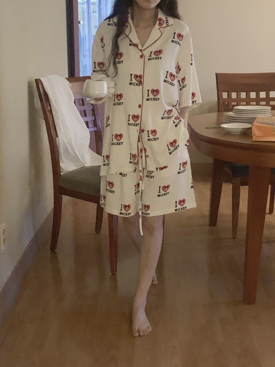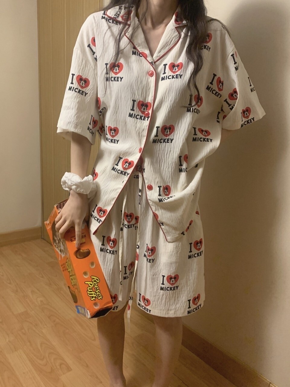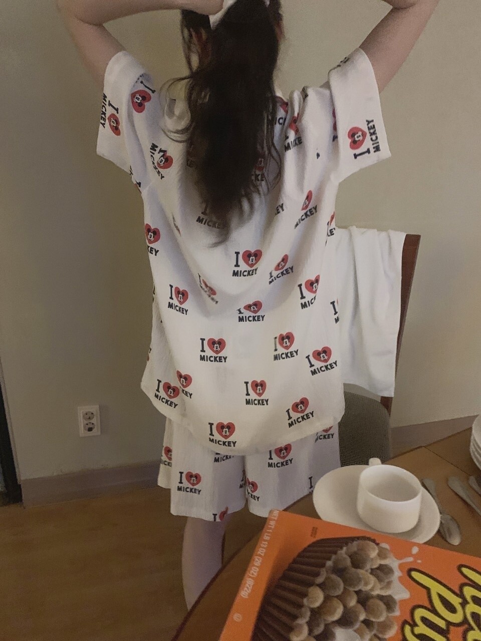 *Comment 귀여움 한도 초과, 감성 가득한 미키 파자마 세트예요! ‘I ♥ MICKEY’ 하트 패턴으로 포인트 업! 여유 있는 실루엣으로 활동성 굿, 가볍고 통기성 좋은 원단으로 사계절 내내 산뜻하게 입기 좋아요 카라와 버튼에 들어간 레드 배색으로 발랄한 무드를 완성해주고 위 아래 모두 귀여운 세트 구성으로 선물용으로도 딱 ..☆ 따로 또 같이 연출해주셔도 문제 없어요~ 집콕 시간마저 특별하게 만들어 줄 파자마로 추천드립니다 :)