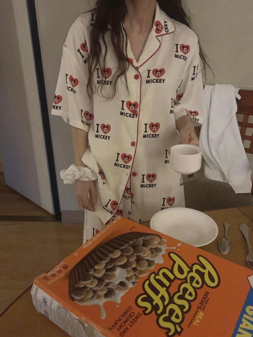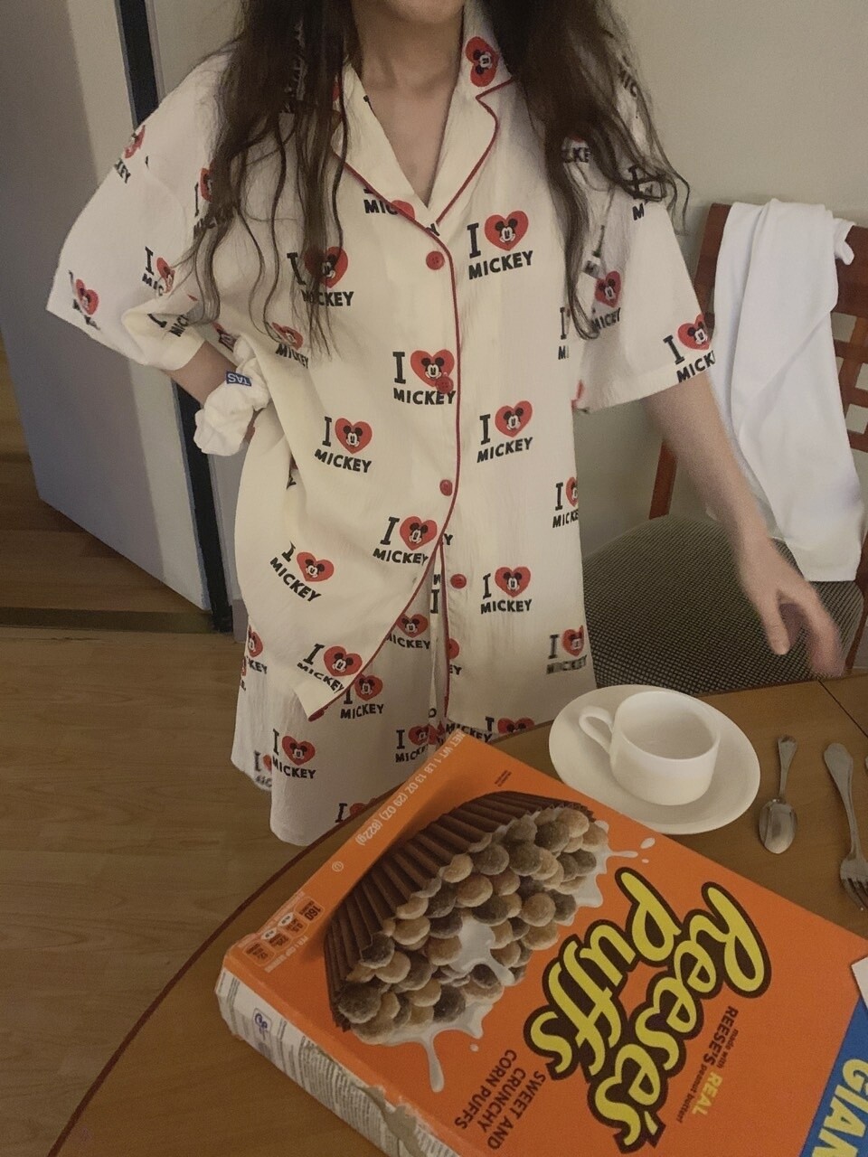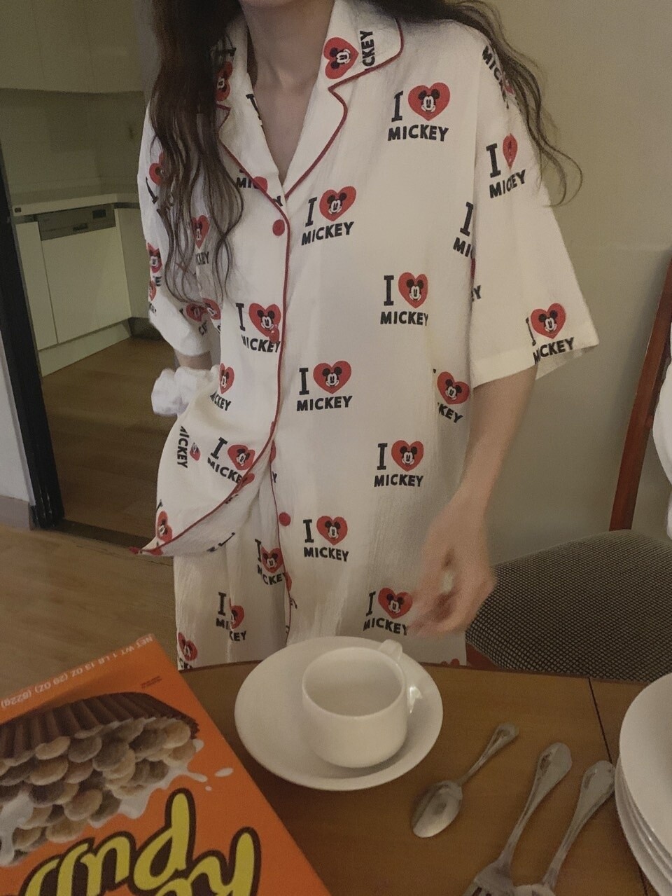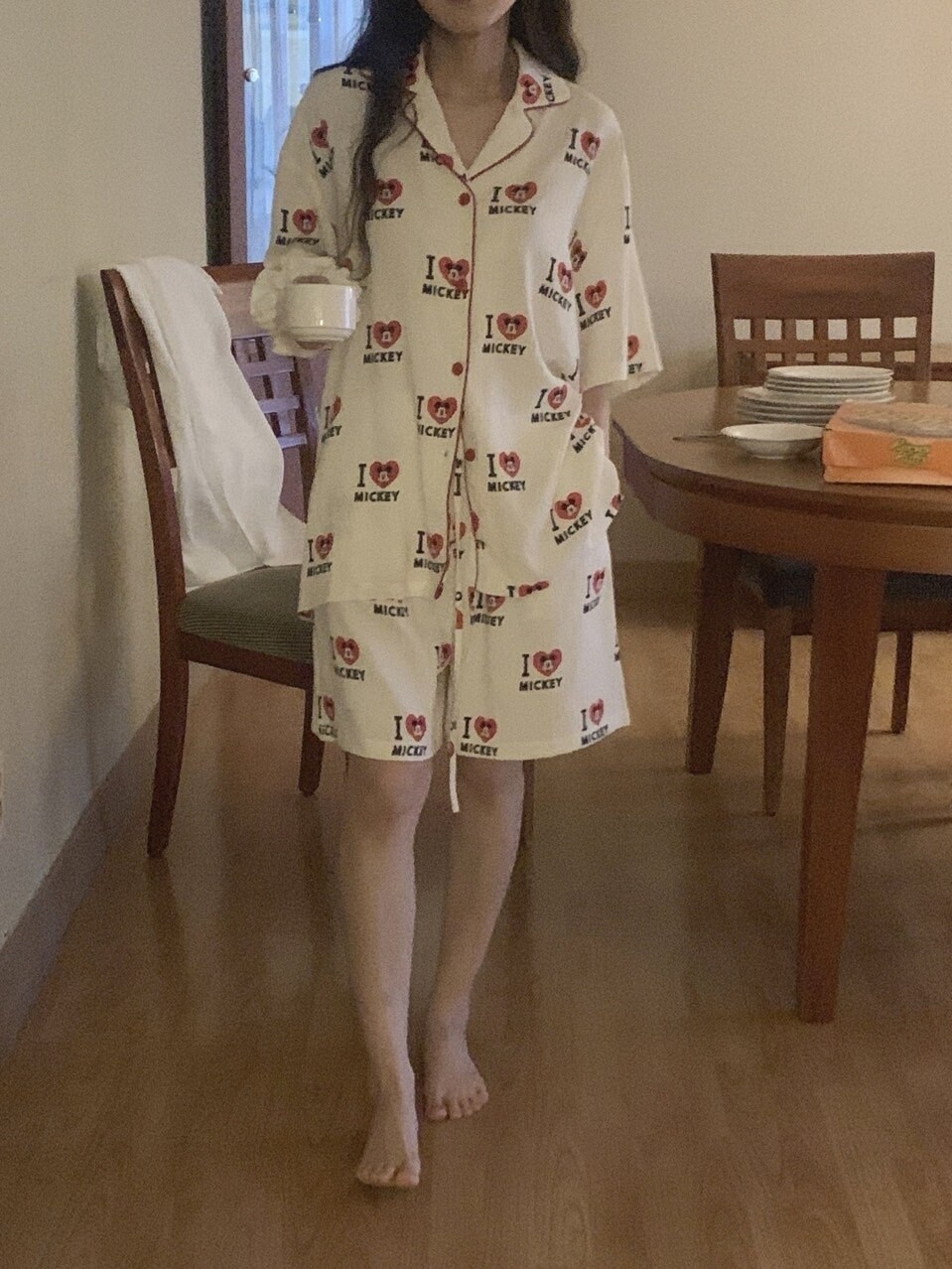 *Comment 귀여움 한도 초과, 감성 가득한 미키 파자마 세트예요! ‘I ♥ MICKEY’ 하트 패턴으로 포인트 업! 여유 있는 실루엣으로 활동성 굿, 가볍고 통기성 좋은 원단으로 사계절 내내 산뜻하게 입기 좋아요 카라와 버튼에 들어간 레드 배색으로 발랄한 무드를 완성해주고 위 아래 모두 귀여운 세트 구성으로 선물용으로도 딱 ..☆ 따로 또 같이 연출해주셔도 문제 없어요~ 집콕 시간마저 특별하게 만들어 줄 파자마로 추천드립니다 :)