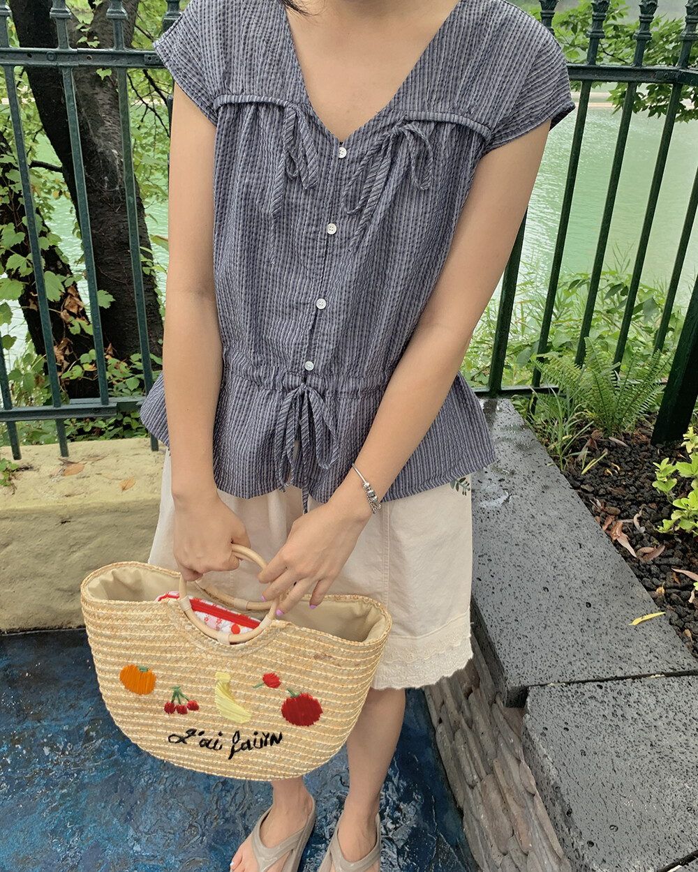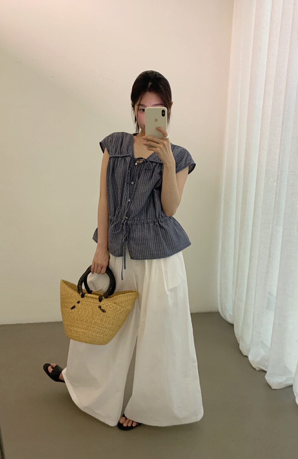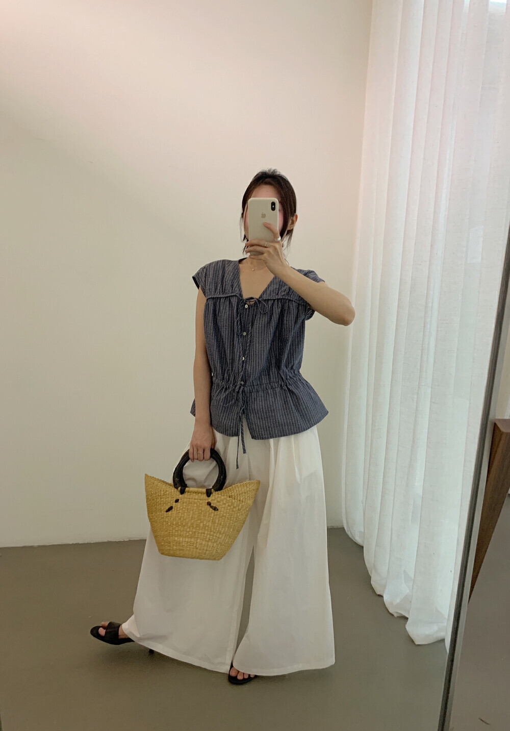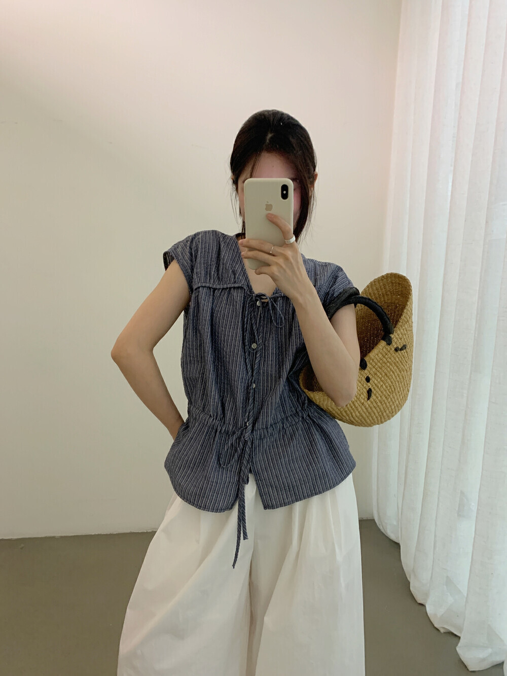 내추럴한 무드에 러블리 디테일을 더한 민소매 블라우스예요!
