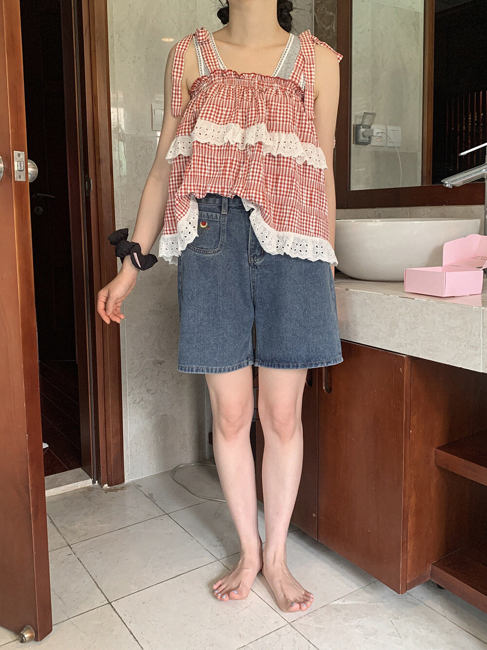 신축성 좋음 / 두께 얇음 / 비침 화이트약간 / 안감 없음