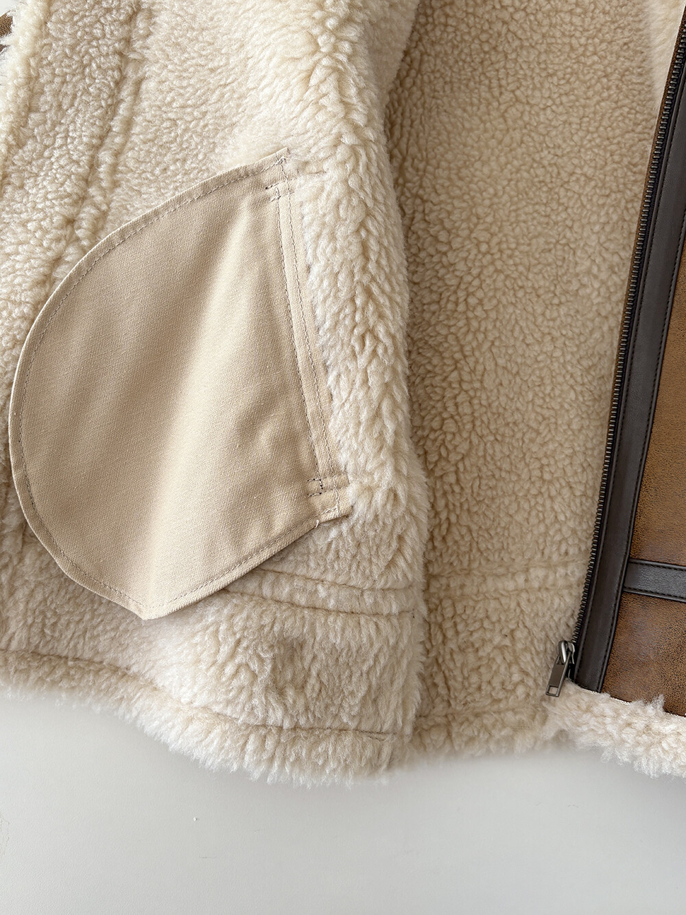 도톰한 무스탕 특유의 볼륨감에