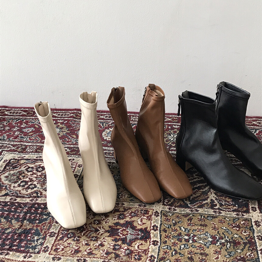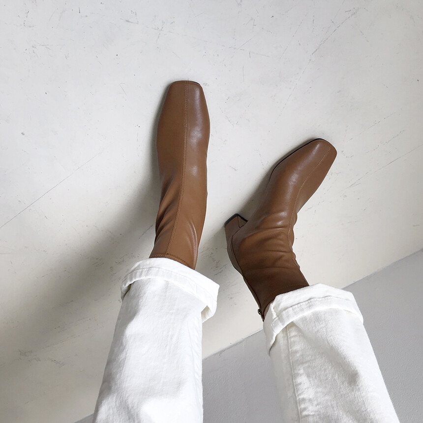 깔끔하면서도 시크한 무드의 앵클 부츠예요!