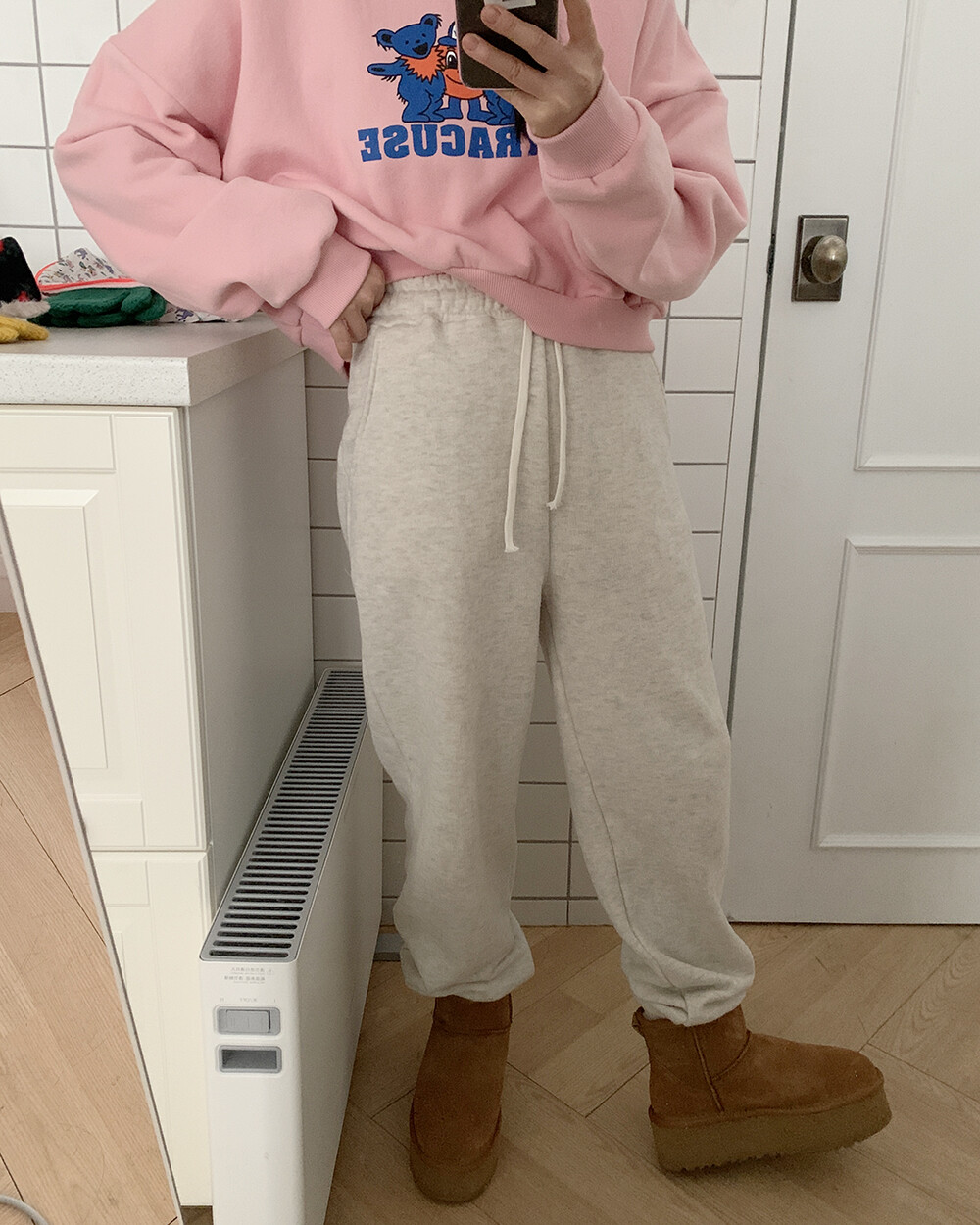 신축성 보통 / 두께 보통 / 비침 없음 / 안감 기모