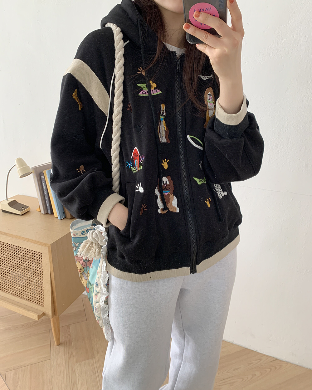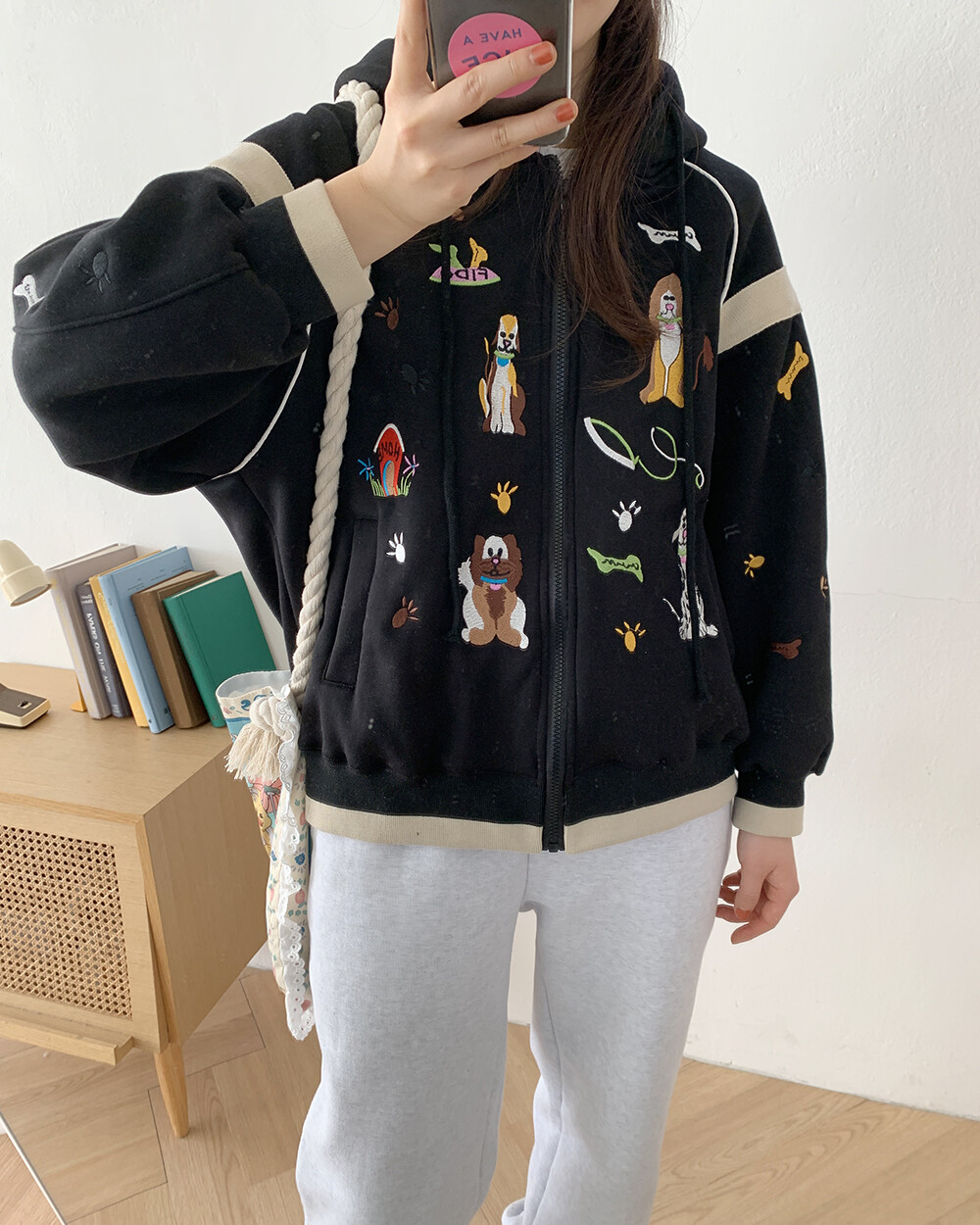 *단독* 댕댕이 자수 후드집업