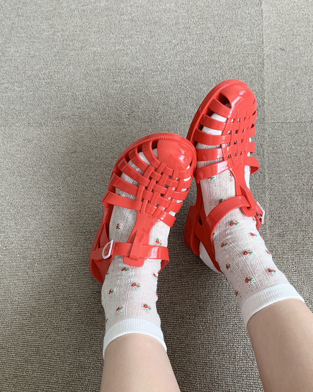 빨간맛 플라워 시스루 삭스