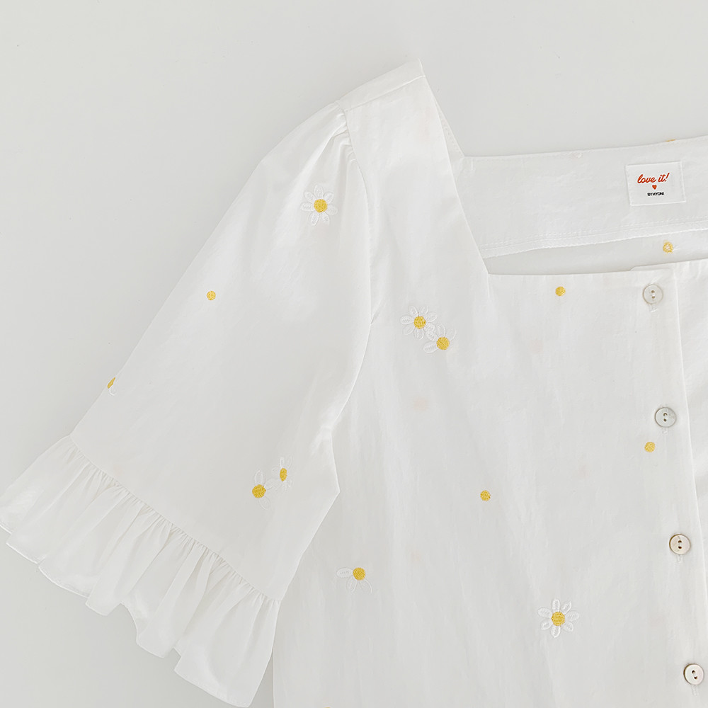 쇄골라인이 돋보이는 스퀘어넥라인으로